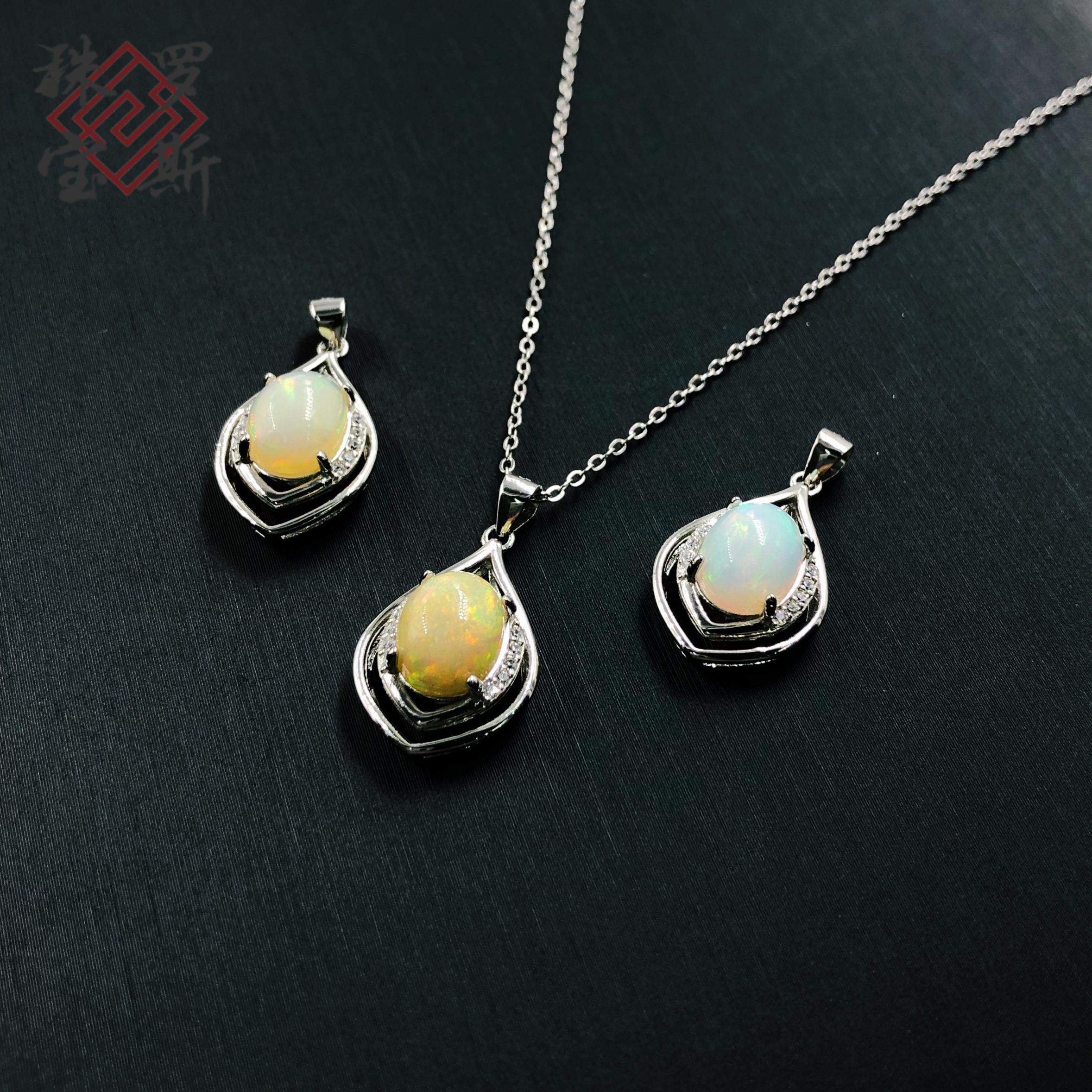 "Live special" 7 × 9mm Oper egg noodles Four-claw silver inlaid O-shaped necklace in color random