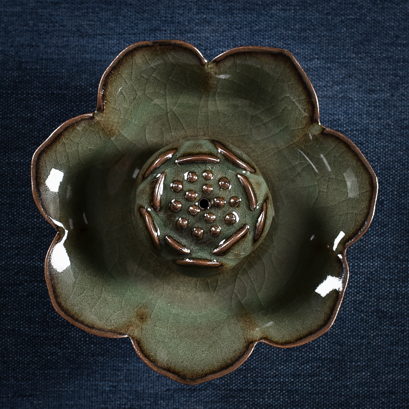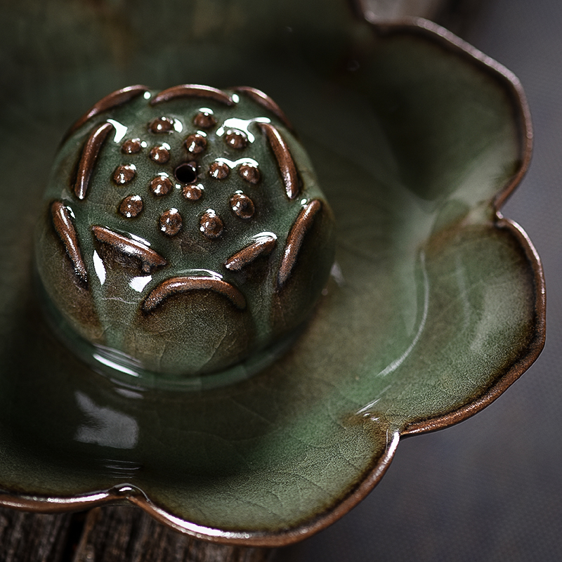 Green porcelain handmade incense stove fragrant inserts Home room Insider Incense Stove room Chancerous ceramic Furnace Iron Tire Line Fragrant insert Incense Stove