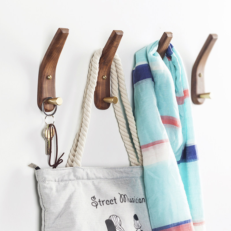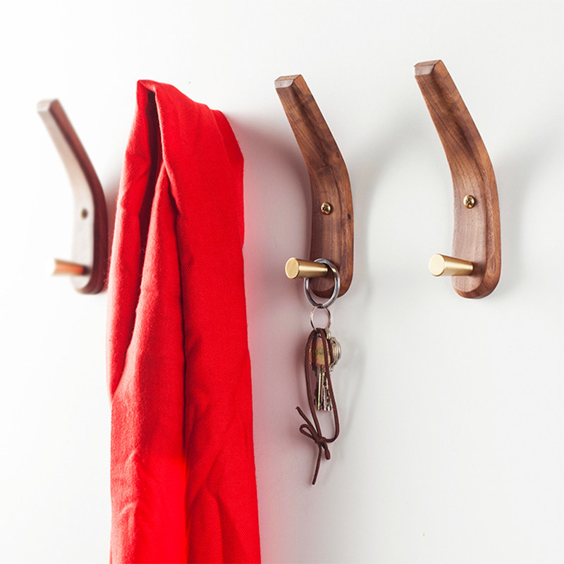 Solid wood clothes hook entry door porch wall hook wall hanging wall creative Nordic brass wooden hanger