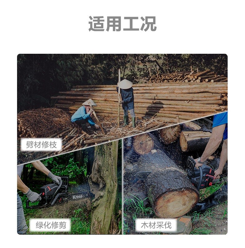 Chainsaw German KG301 oil - saw high power gasoline chainsaw cutting saw outdoor hands lifting woodsaw