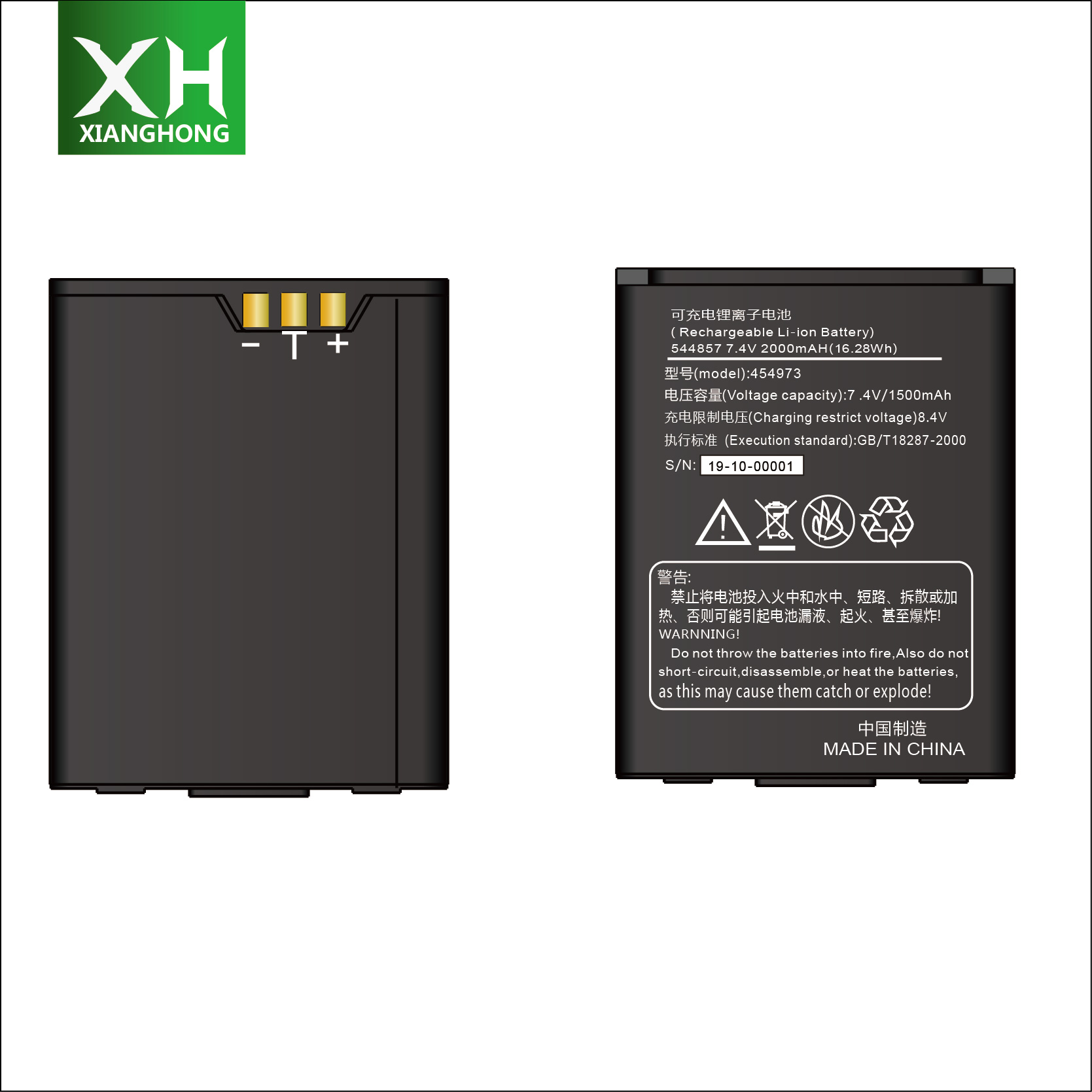 Liankai LK-T9 printer locomotive pin printer original battery 544857 battery 554460A 454973