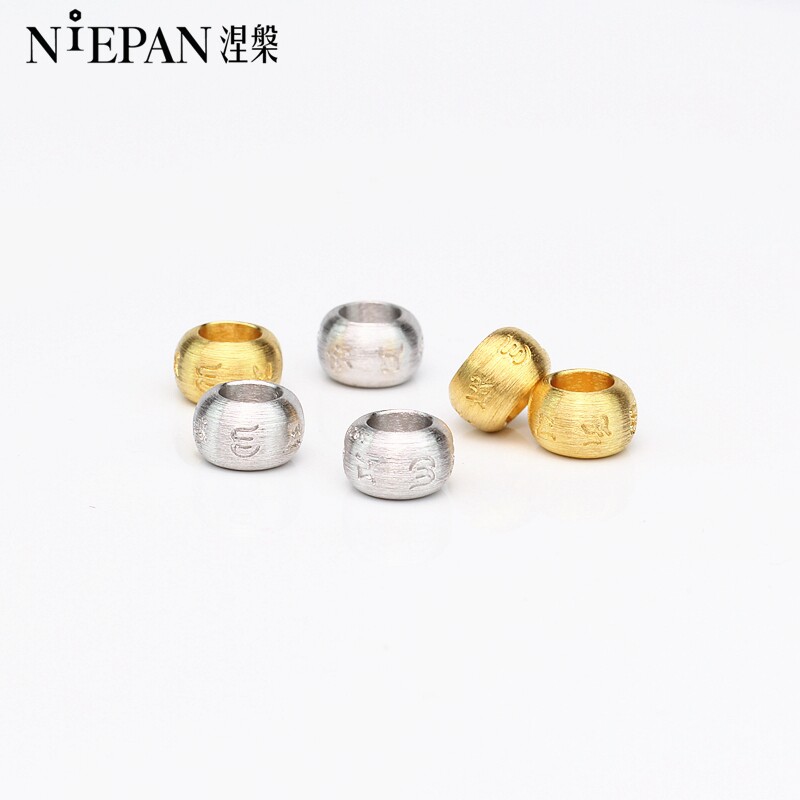 S925 pure silver DIY accessories Six words true string beads septul handwoven handrope necklace string accessories