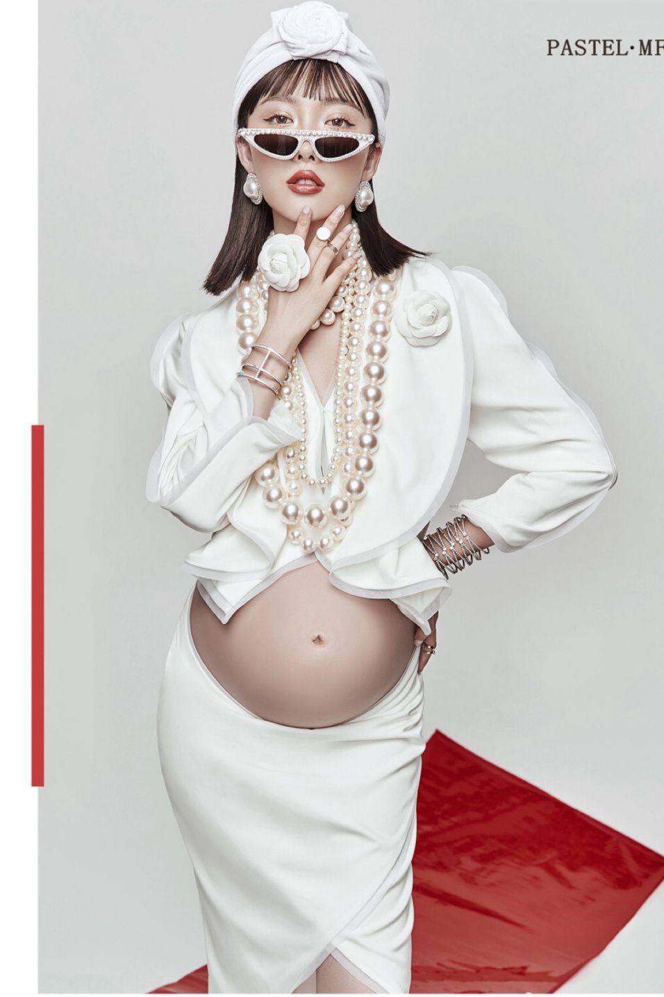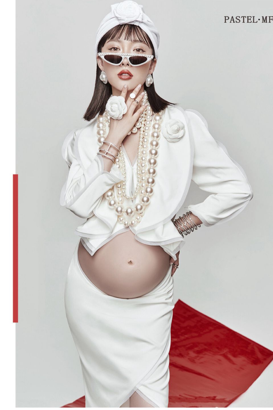 New photo of pregnant woman Moden new trend of retro-paste pregnant art theme to take pictures of two-piece clothing