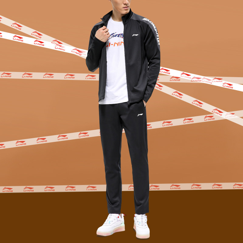 Li Ning sports suit men's and women's spring and autumn leisure two-piece sweatshirt sweatpants tie foot sports pants sportswear cardigan