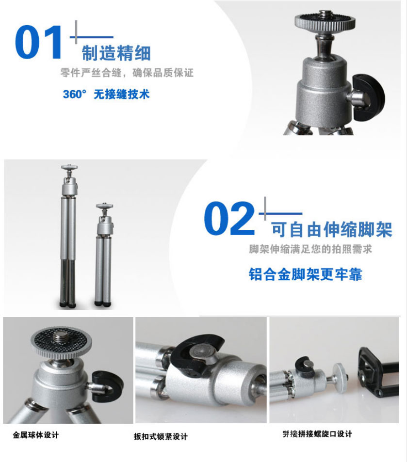 Silver tripod silver tripod U type mobile phone clip silver tripod double hole phone clip silver tripod crossbar mobile phone clip silver tripod thick section horizontal vertical phone clip silver tripod thickening section