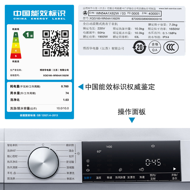 SIEMENS 10kg washing and drying integrated sterilization household drum washing machine WN54A1X82W