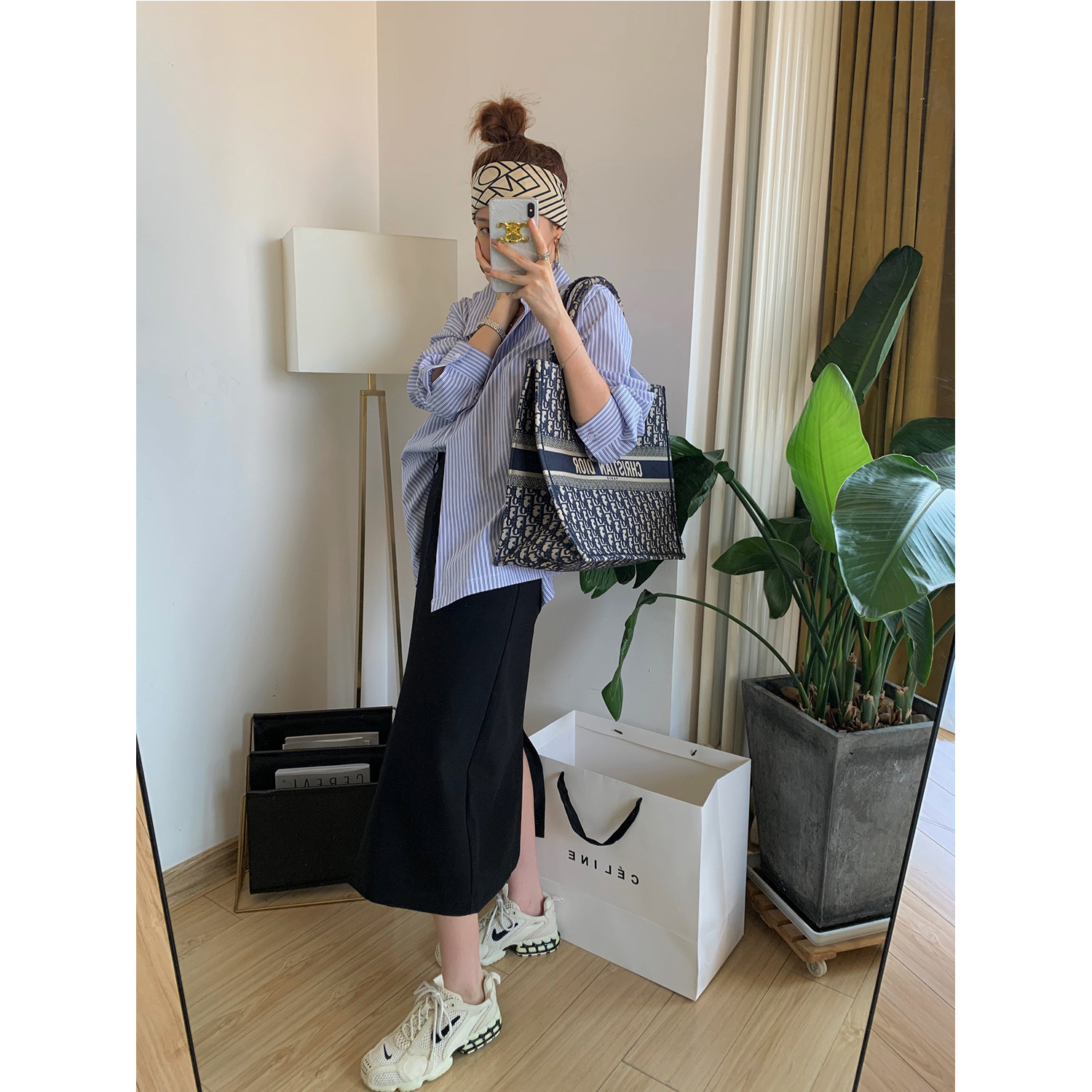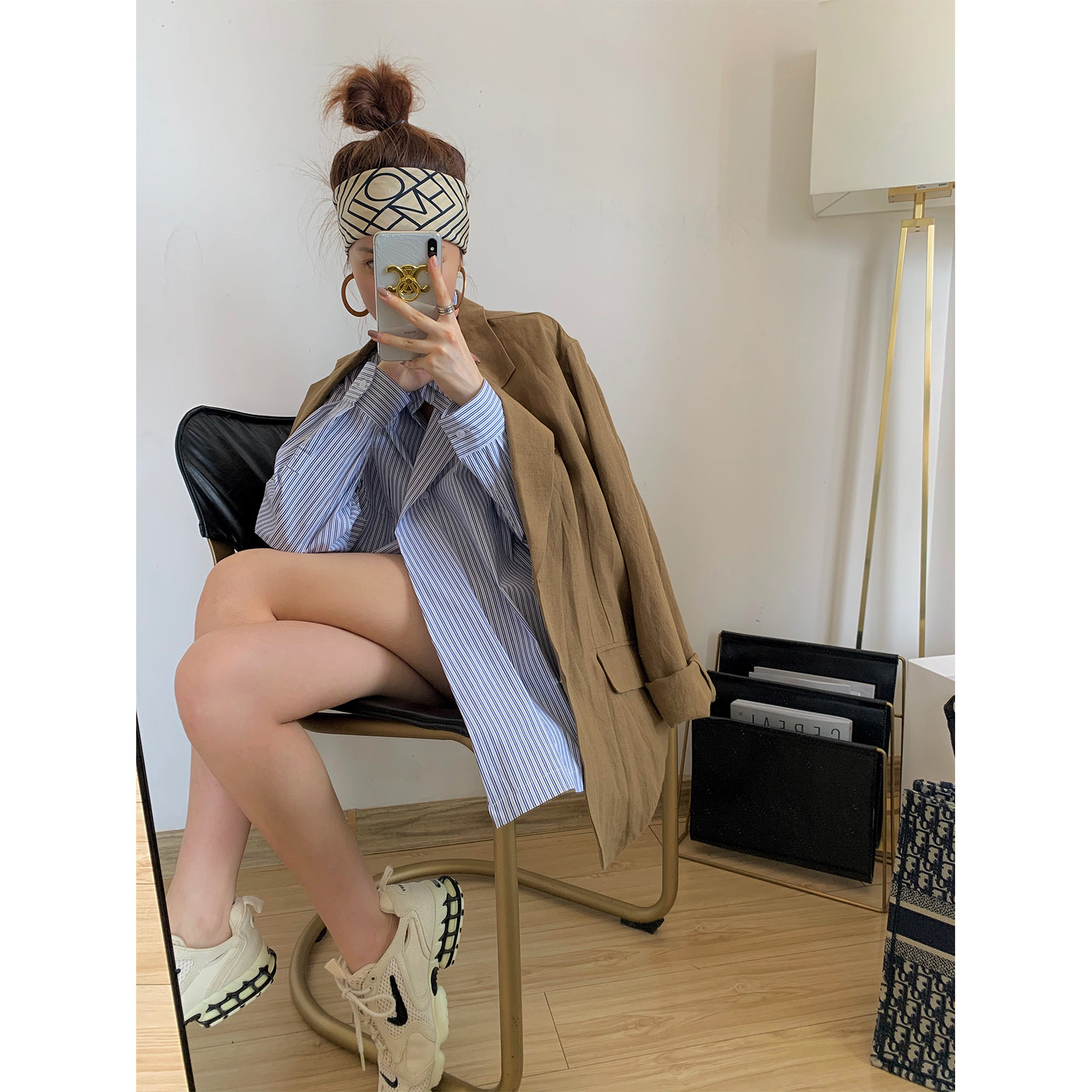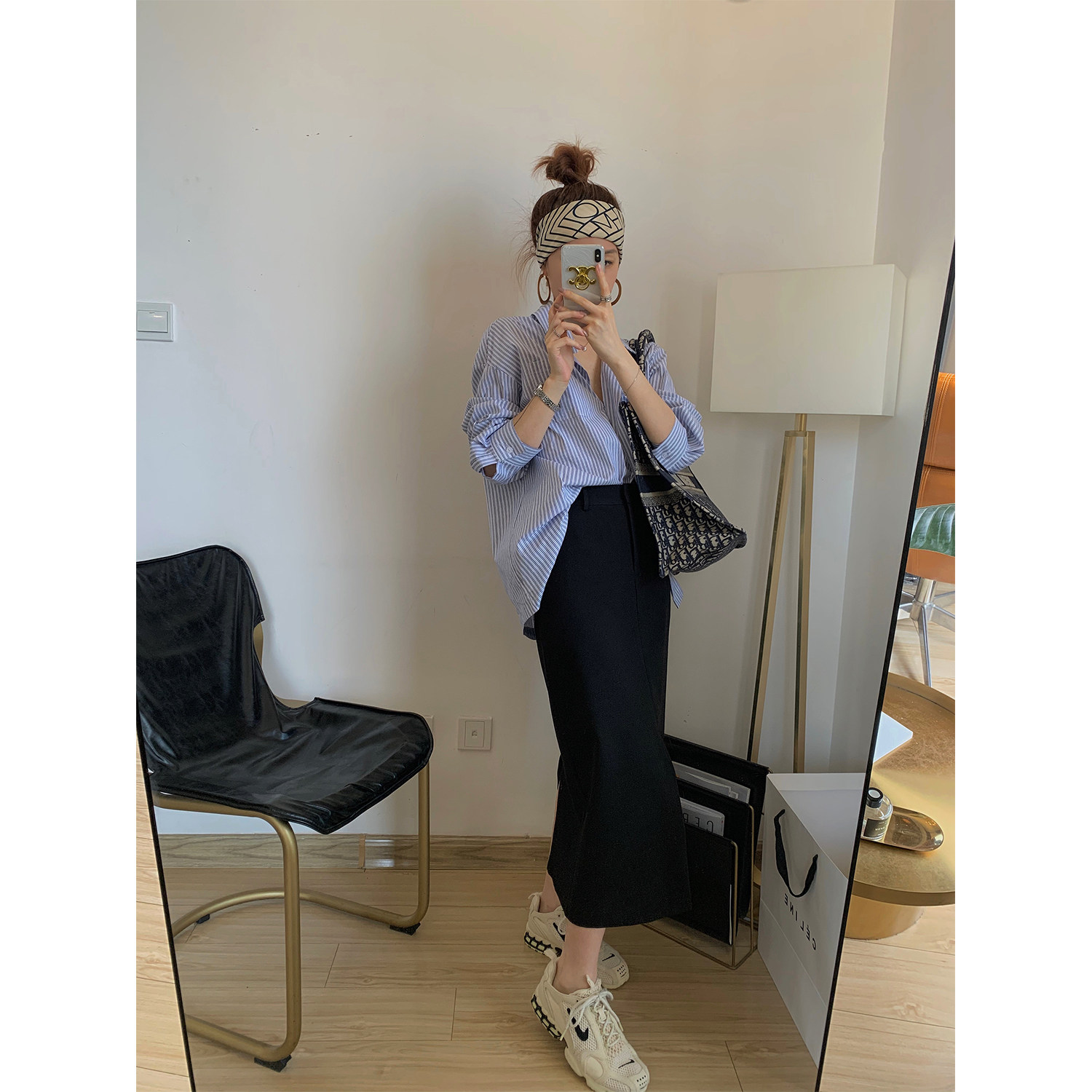 NSS COLLECTION minimalist one button blue and white striped shirt early autumn new niche loose shirt Women