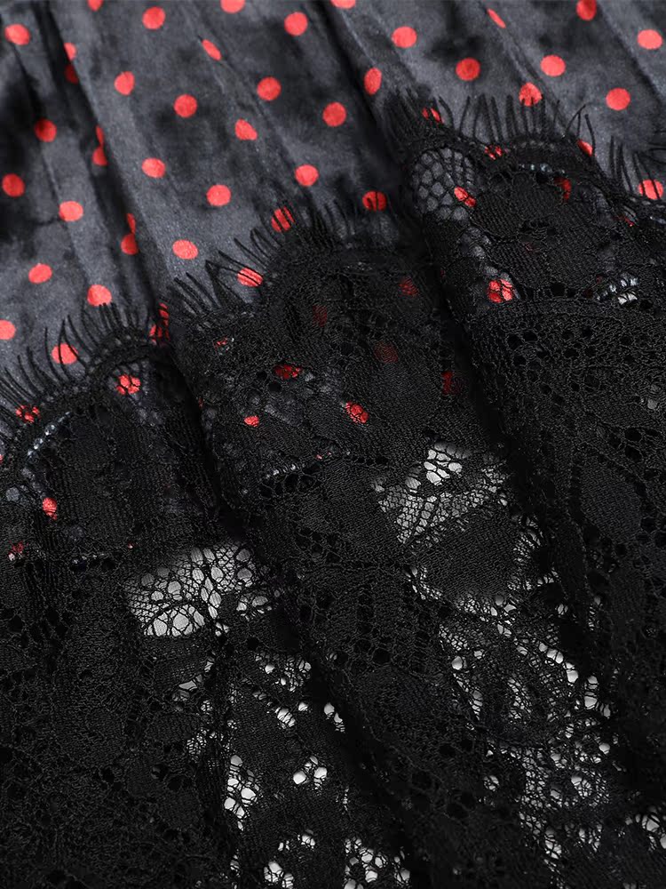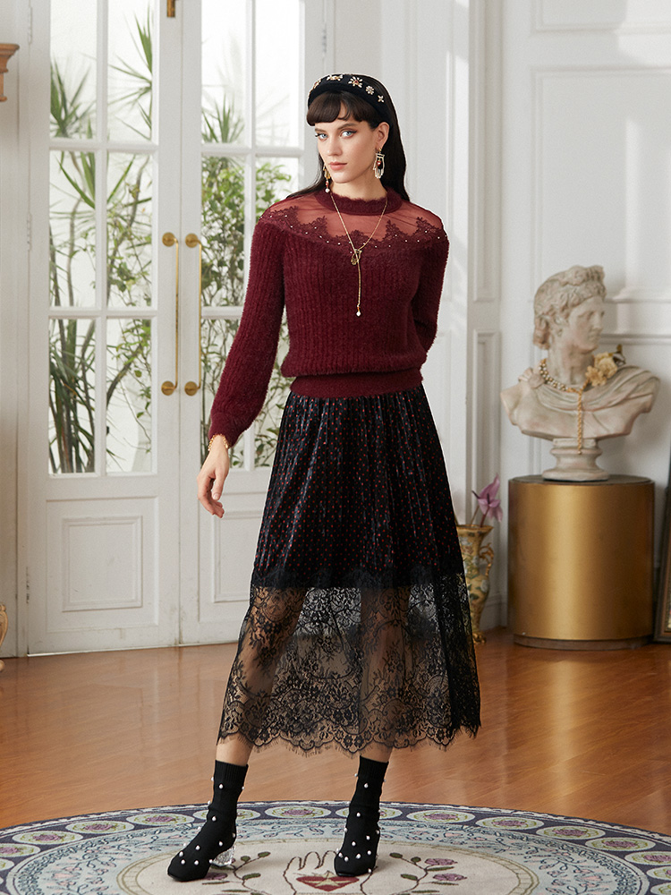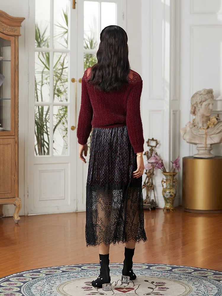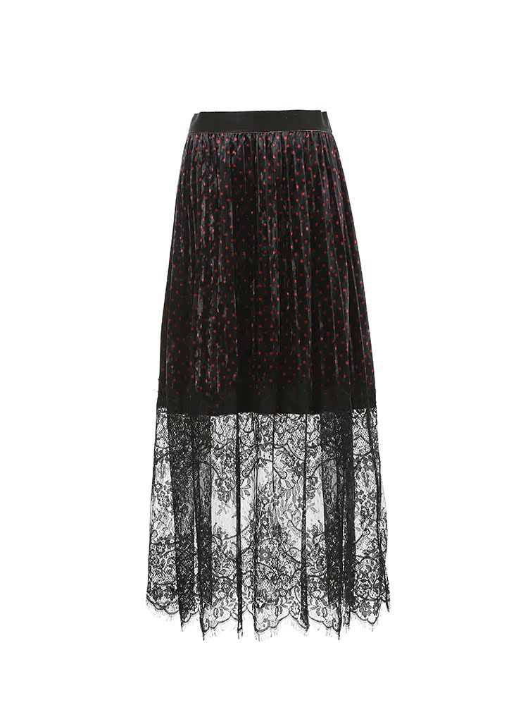 MAXRIENY autumn new high-waist temperament lace skirt pleated skirt romantic and elegant court style half skirt