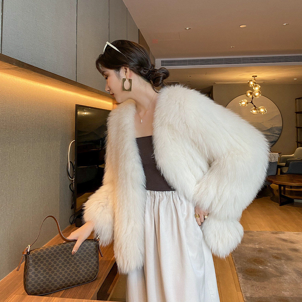Reduced Age Zero Resistance 2021 New White Fox Fox Fur Woven V Pilot fur coat medium long version of the fur coat woman