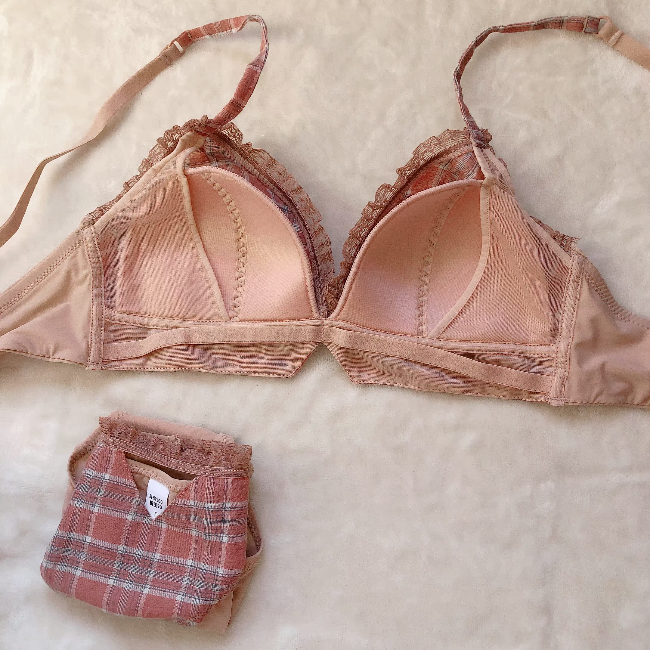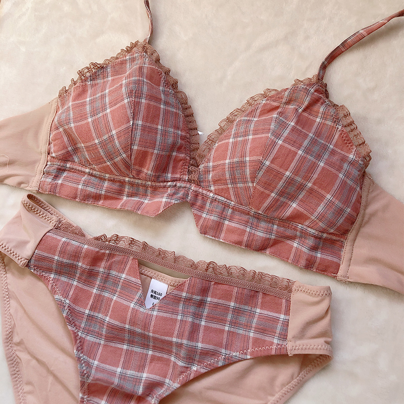 Deep alleys return to the girl Japanese set ultra-thin without steel ring small chest underwear autumn and winter thin breathable triangle cup bra