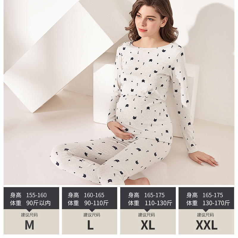 Pregnant woman breast-feeding autumn clothes blouses clothes Sleeping Clothes Pure Cotton Feeding Postpartum Warm Underwear Full Cotton Autumn Winter Spanking-Taobao