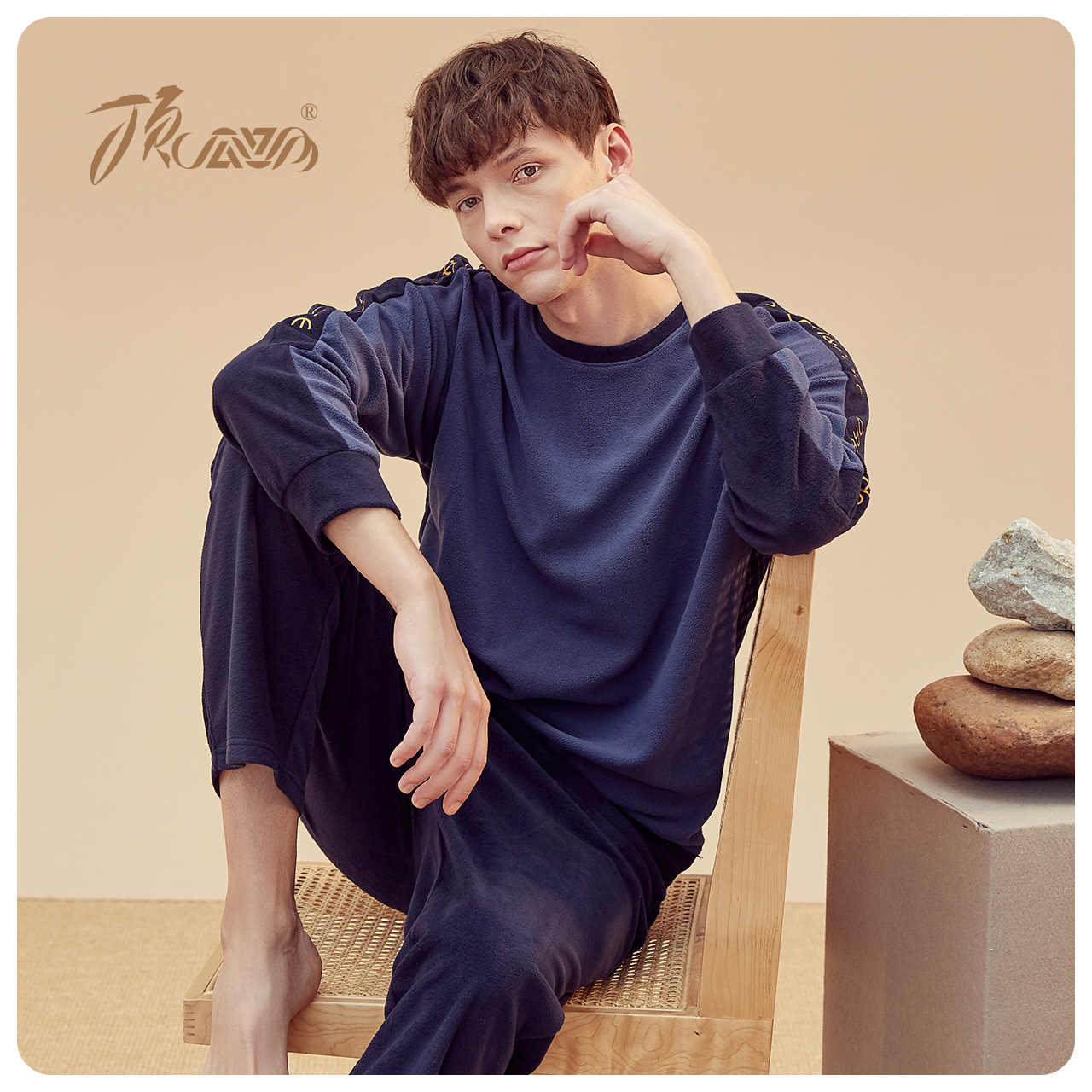 Top guagua pajamas for men's autumn and winter sets slim suede sportswear suit can be worn outside the home for easy leisure