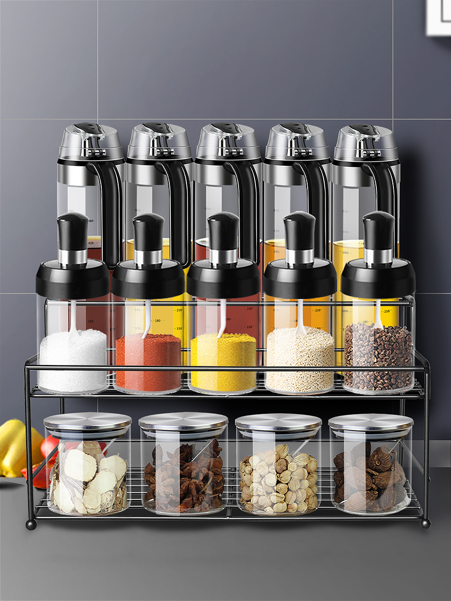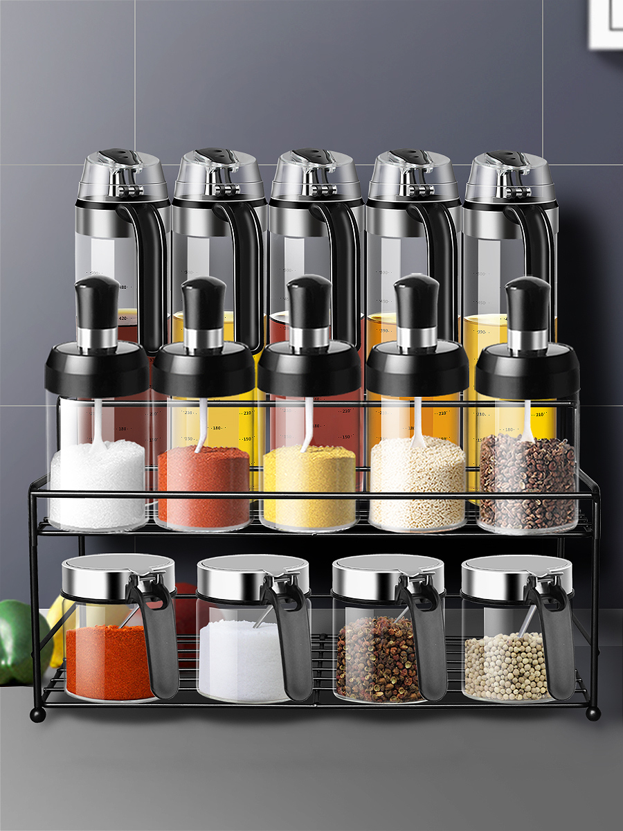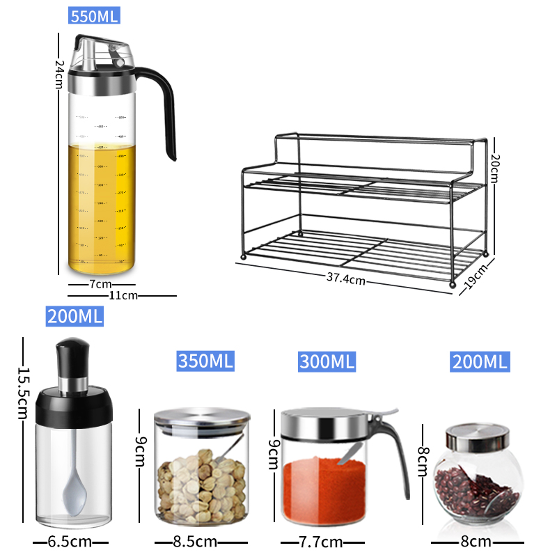 Seasoning box Seasoning pot Soy sauce vinegar Olive oil pot Household set with shelf Chicken essence Salt pepper pepper noodle pot