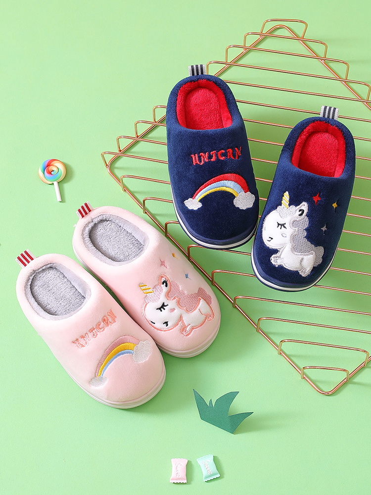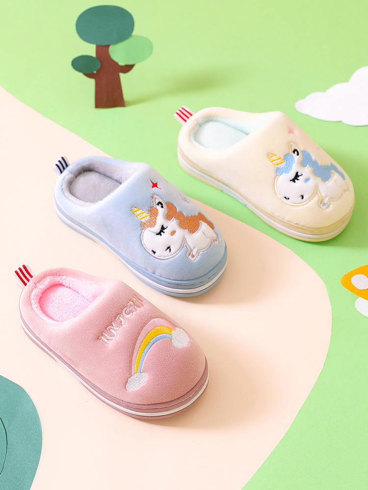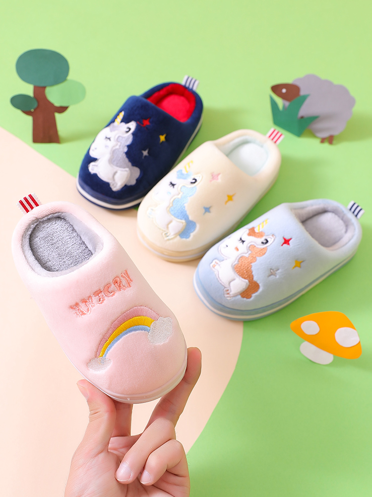Children's cotton slippers winter boys and girls baby indoor household non-slip cute unicorn warm fur slippers