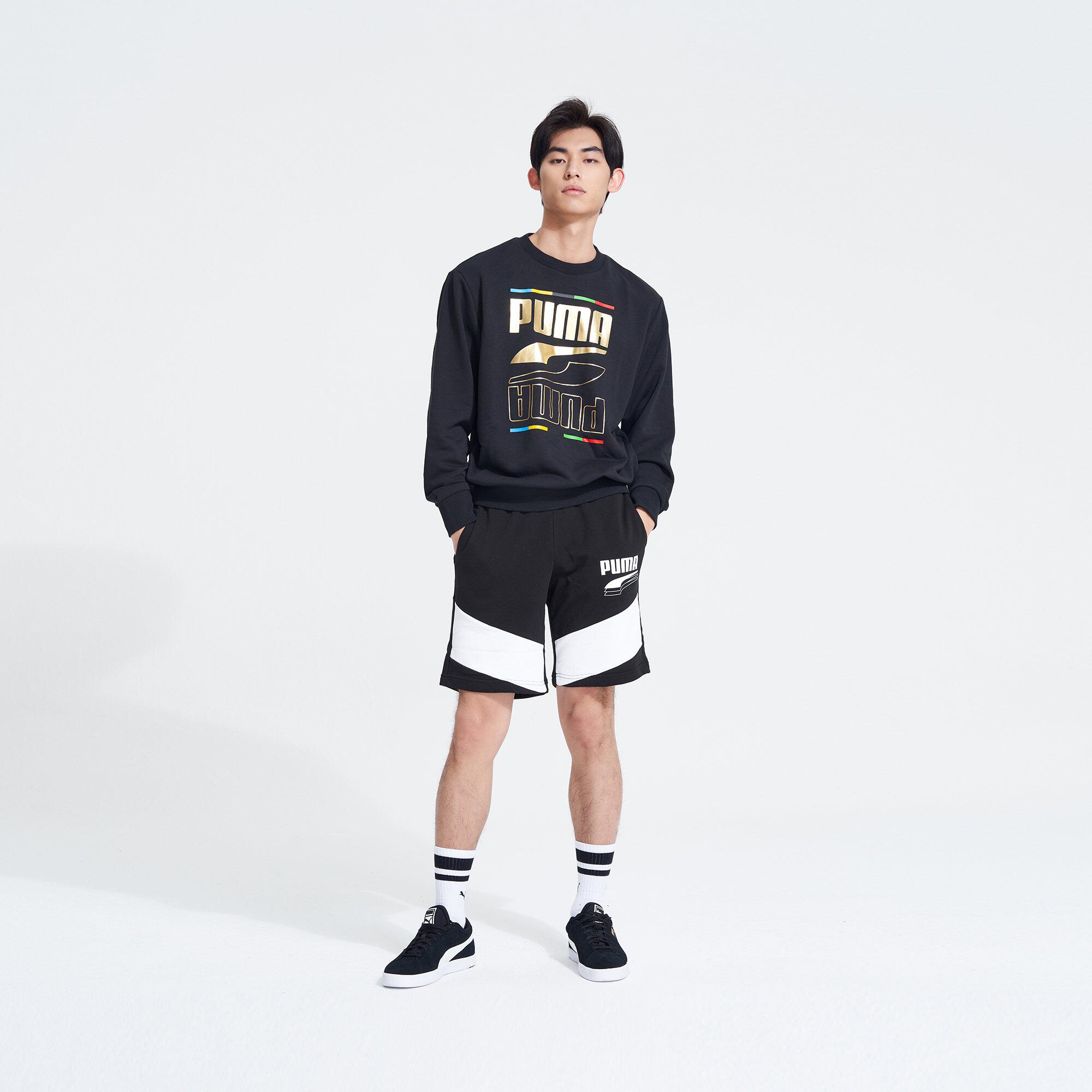 PUMA Puma Official Men's Wei pants thick cotton T printed round collar Long sleeves thick cotton T REBEL 585267