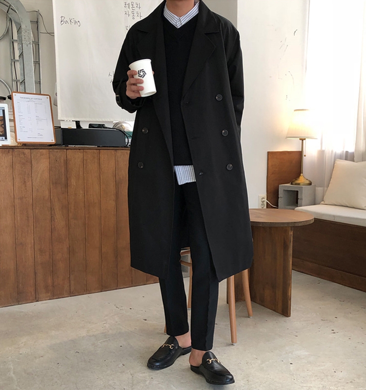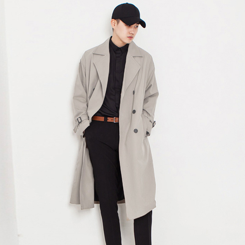 New spring and autumn men's windbreaker Korean version of the long version of the handsome knee youth leisure trend double-breasted coat coat
