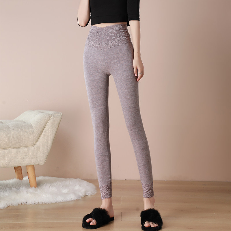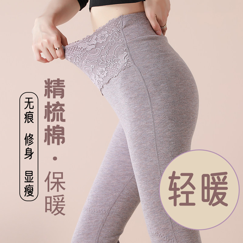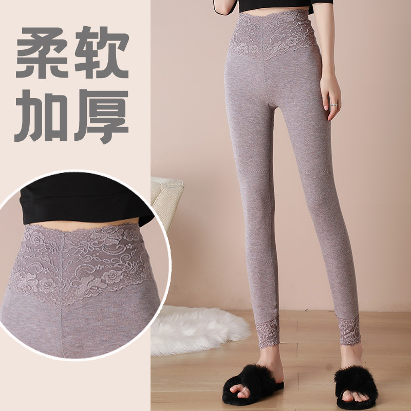 2022 High Waist Tummy Control Pure Cotton Lace Long Johns Women's Spring and Autumn De Velvet Self-heating Warm Pants