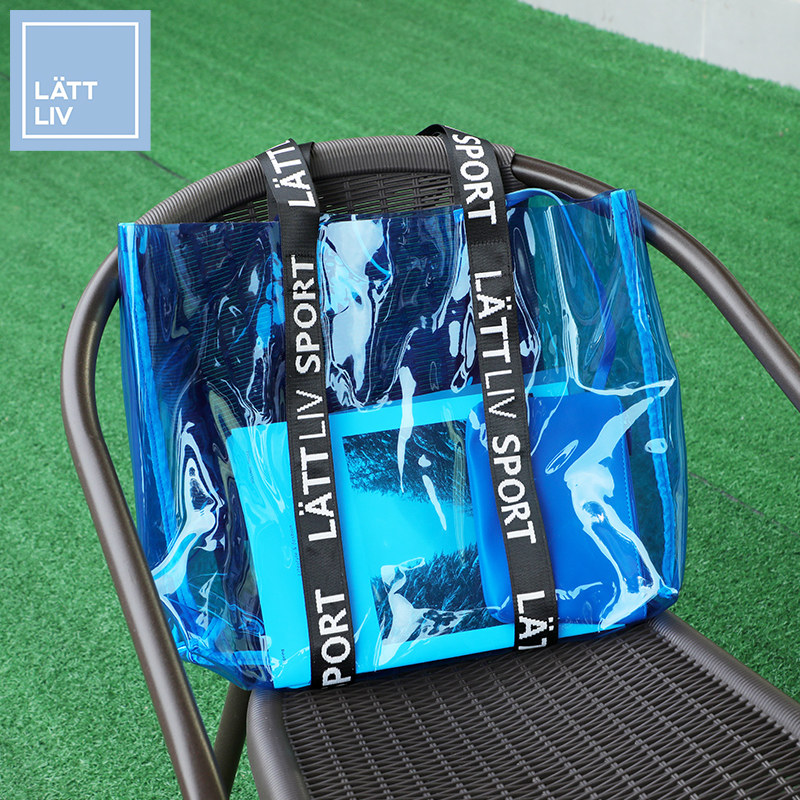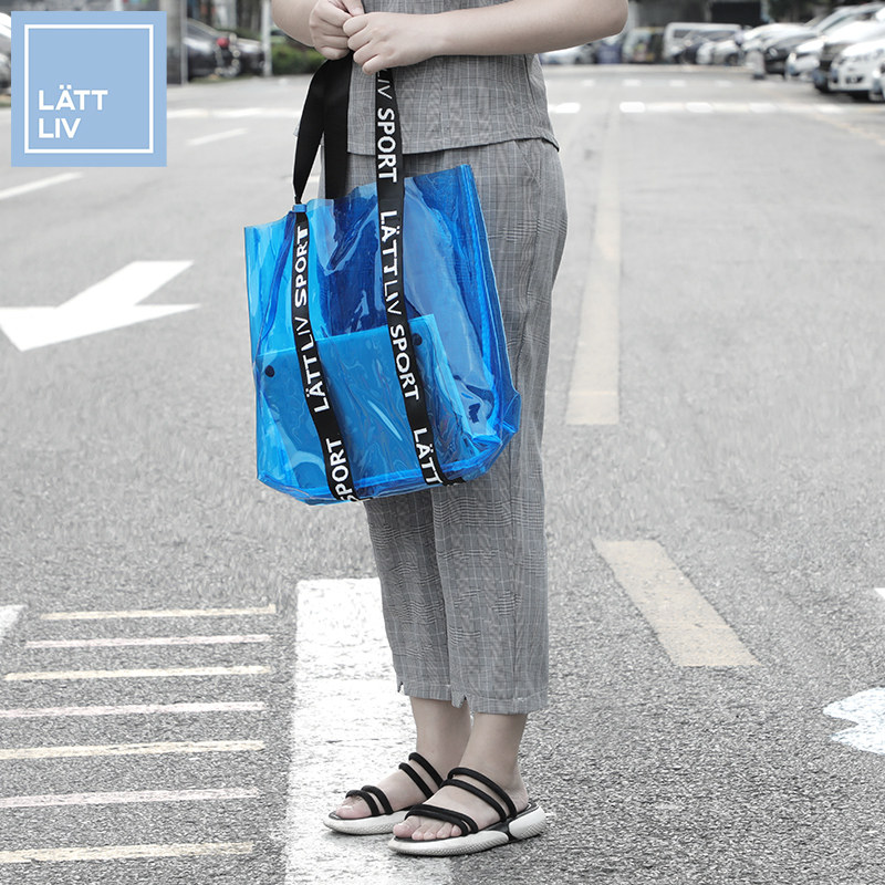 LATTLIV life worry-free fashion alphabet ribbon transparent jelly bag female blue shoulder bag student child mother bag