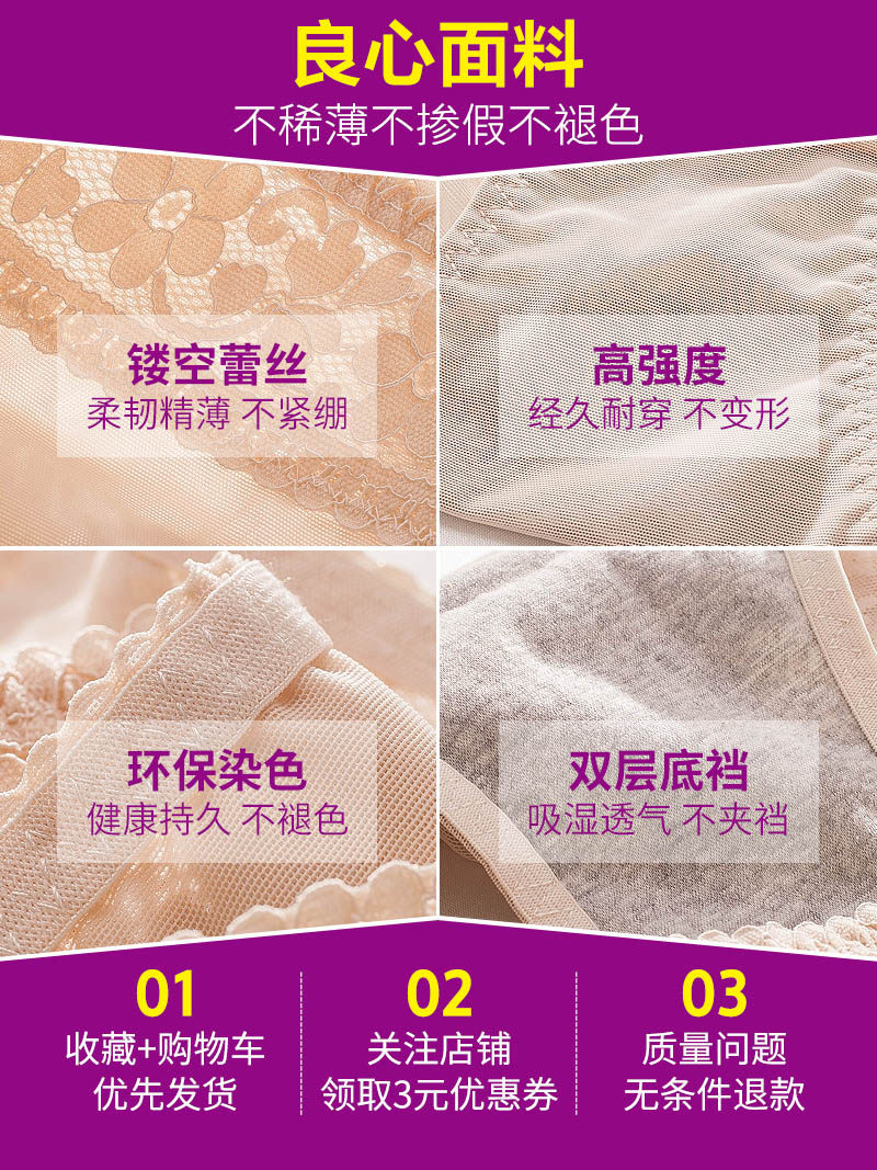 High Waist Panties Ladies Lace Sexy Breathable Cotton Antibacterial Crotch Corsets