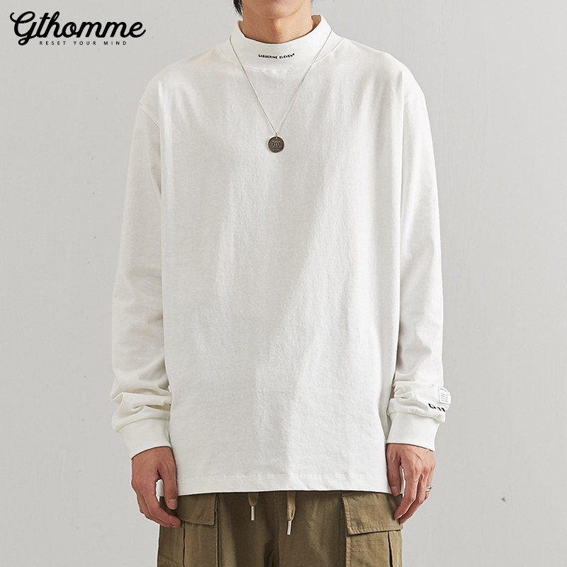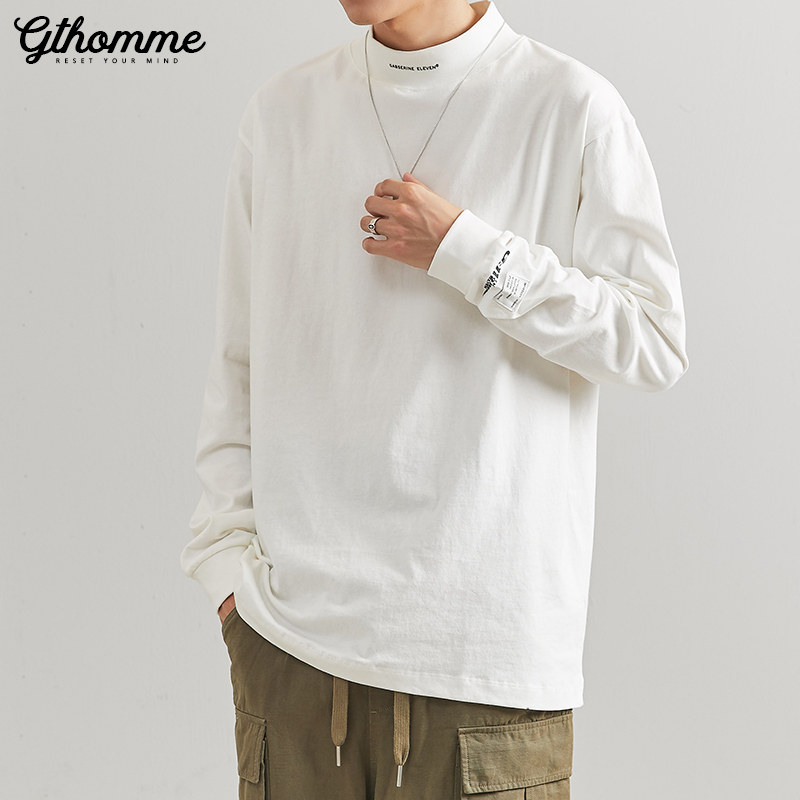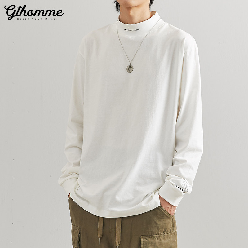 Autumn new men's long sleeve T-shirt loose half-height collar pullover trend Joker casual undercoat jacket