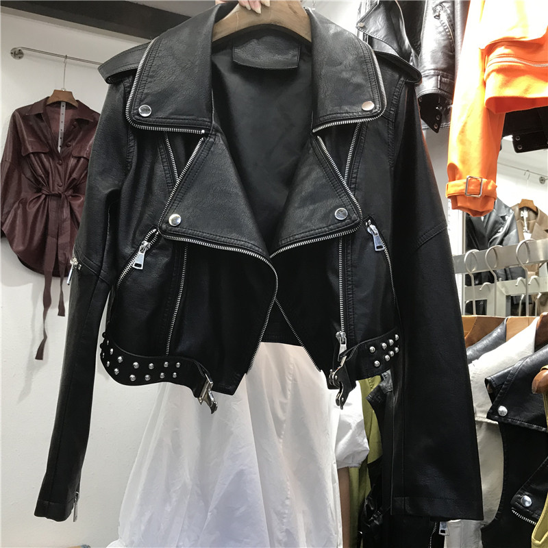 2021 autumn new European and American fashion jacket fashion short slim slim age reduction locomotive leather jacket woman