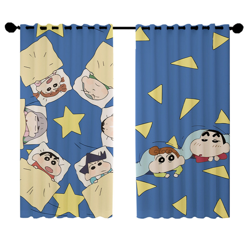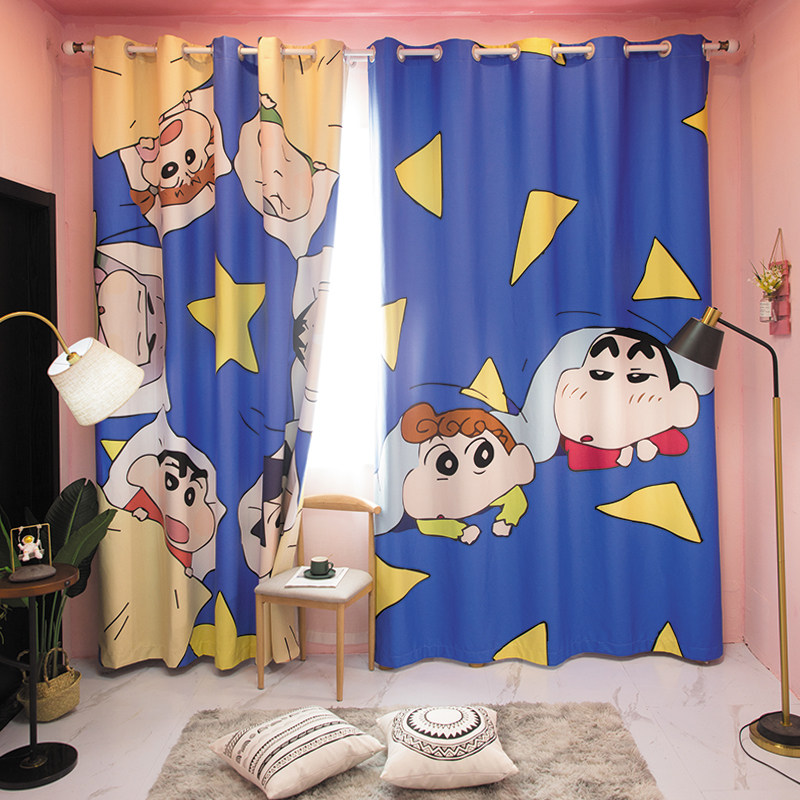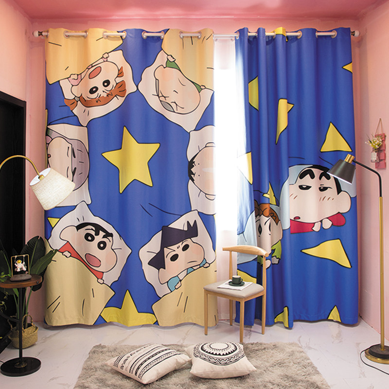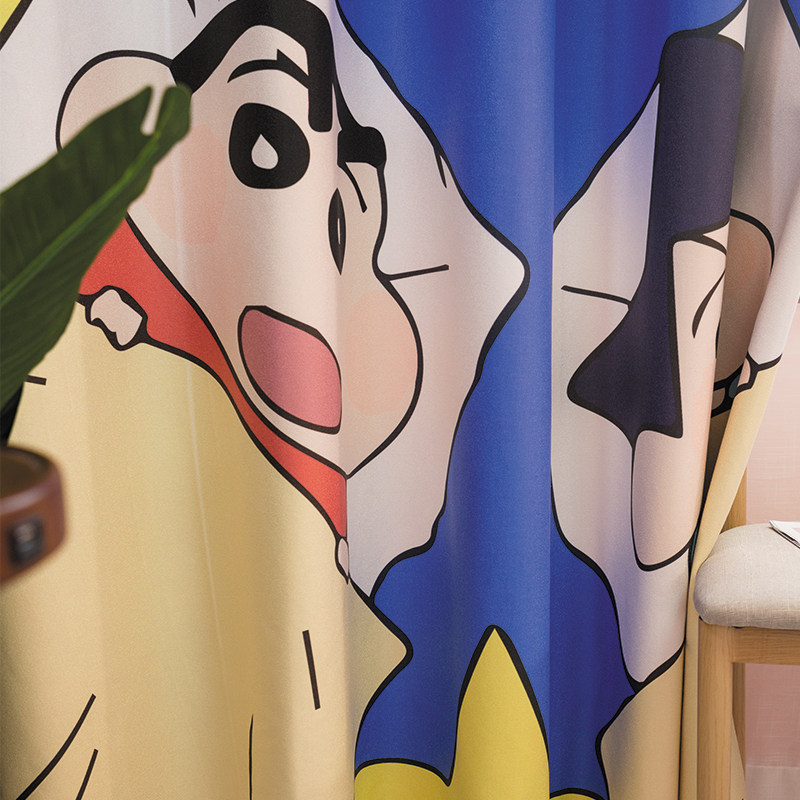 Custom long curtain hemp crayon Xiaoxin cartoon children's shading and heat insulation bedroom floor-to-ceiling windows can be changed to height curtains