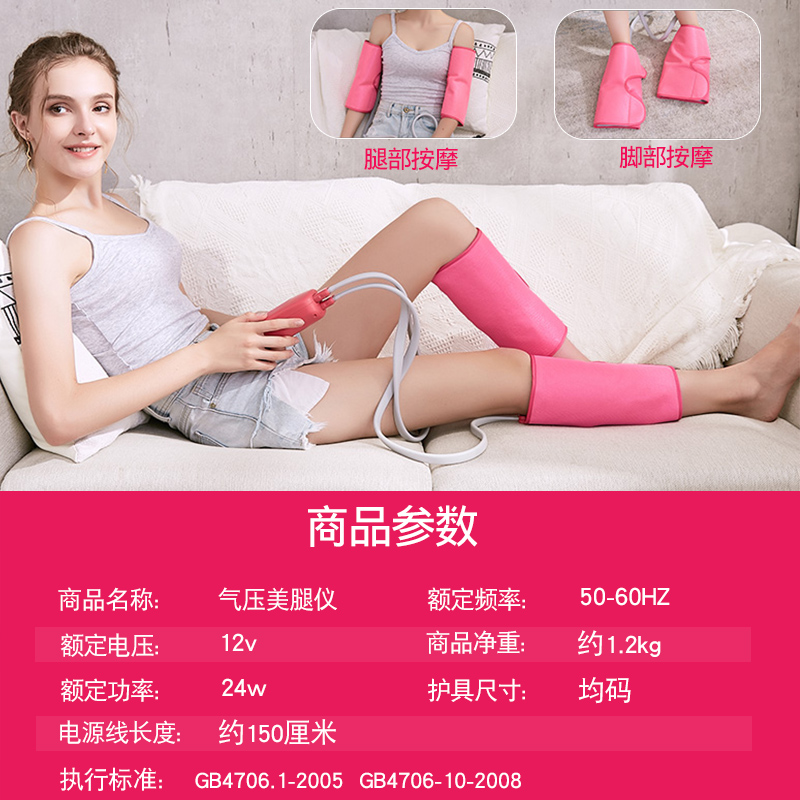 Pink air pressure leg instrument Air pressure circulation massage 3-level intensity adjustment Use gray air pressure leg instrument for multiple parts of arms, legs and feet Air pressure circulation massage 3-level intensity adjustment Multi-parts of arms, legs and feet
