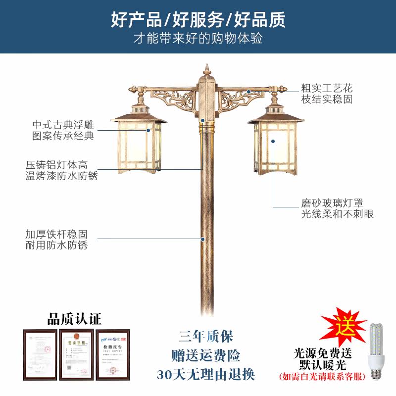 Single head Tokyo Pavilion Garden Light Total height 2 9 m Black Aluminum Bar(Send LED bulb) Double-head Tokyo Pavilion Garden Light 3 4 m Black Aluminum Bar(Send LED bulb)