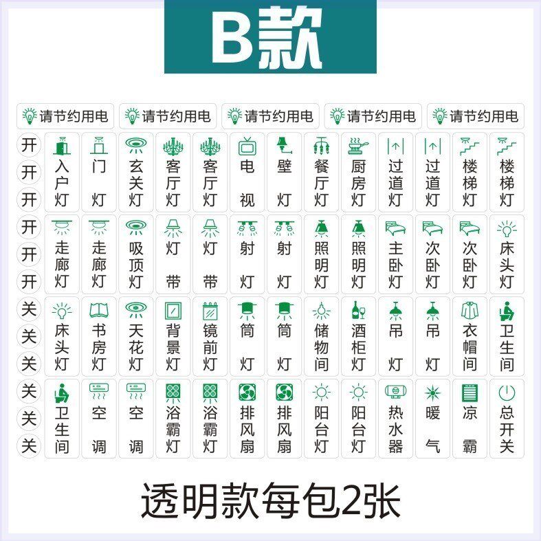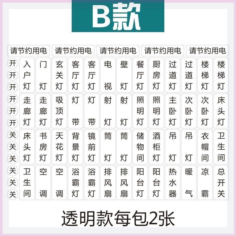Night light indicator stickers household lamp labels kitchen anti-fouling rooms Chinese and English hotel switch stickers living room company fluorescent