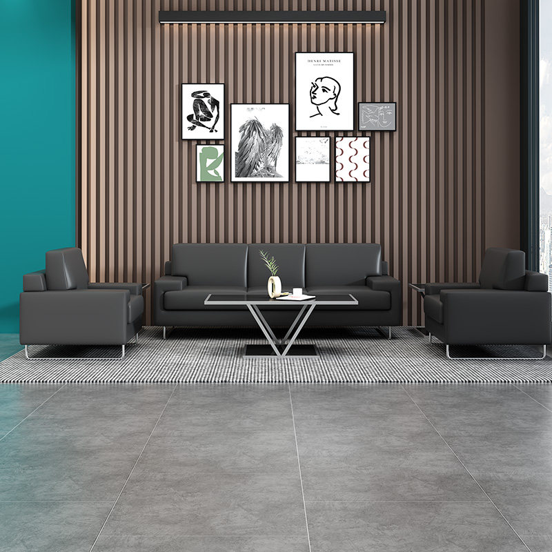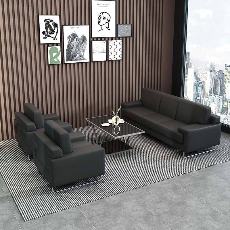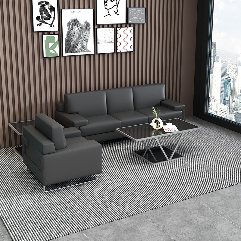 Minimalist modern owner's office sofa Reception guests genuine leather business office sofa tea table combined trio position