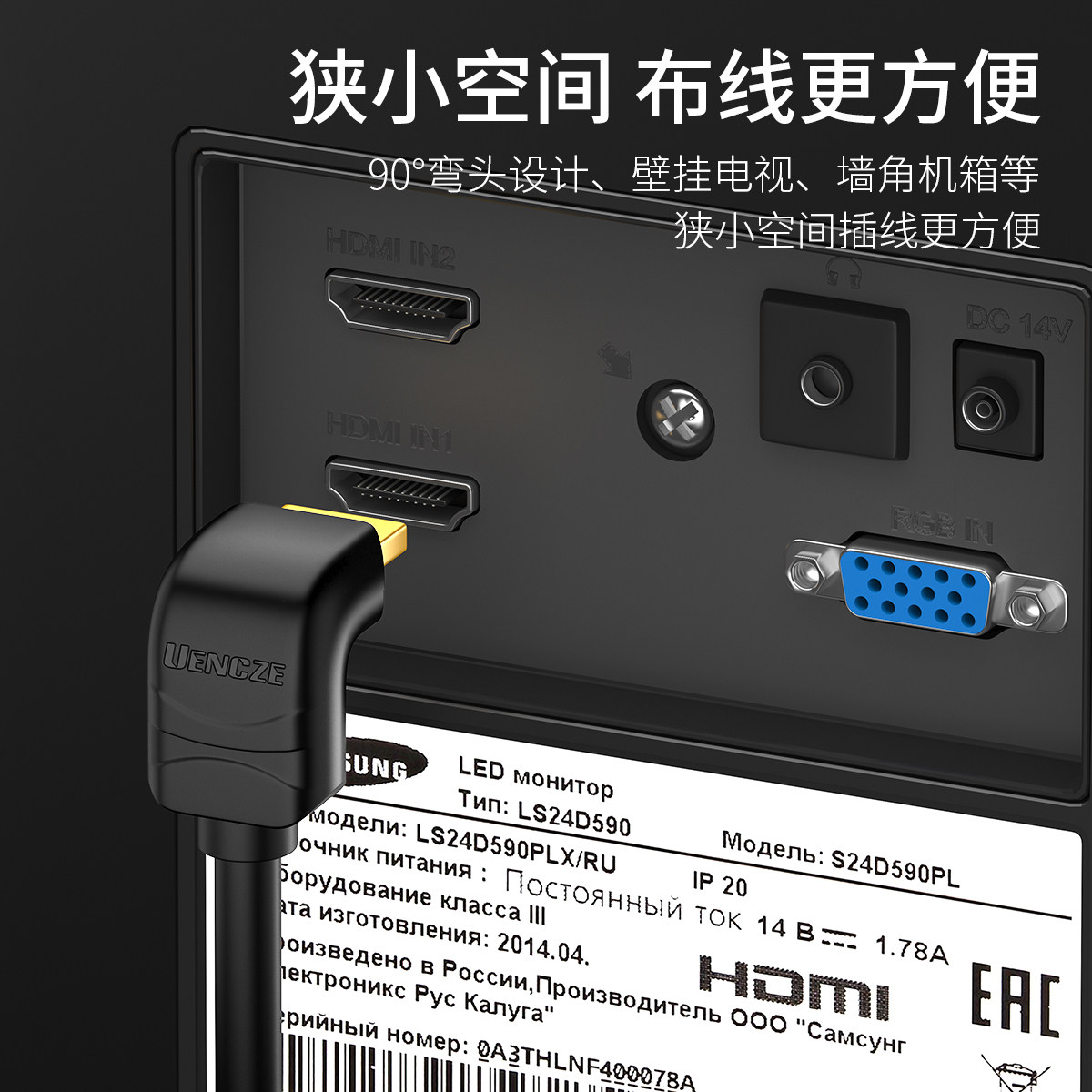 Creator 90-degree HDMI cable 2 0 version 4k TV computer projector right-angle high-quality line narrow space