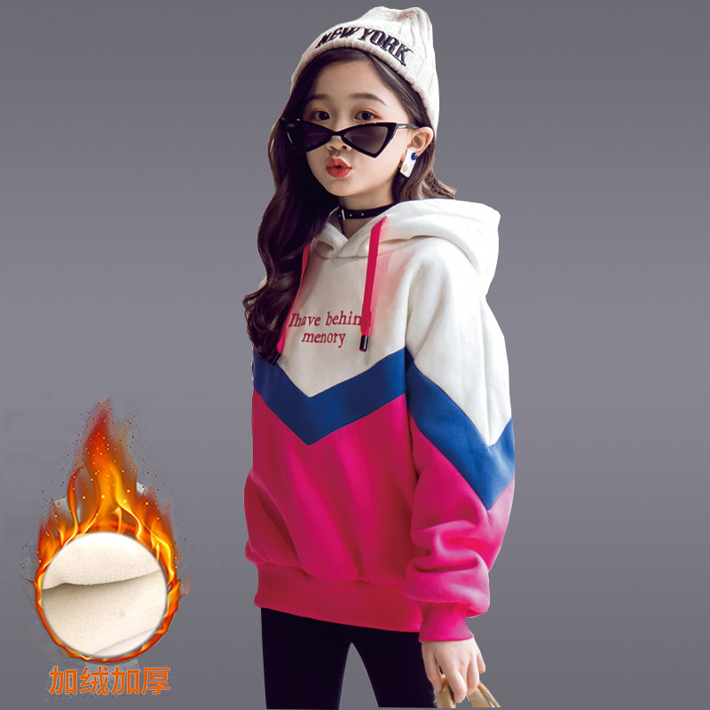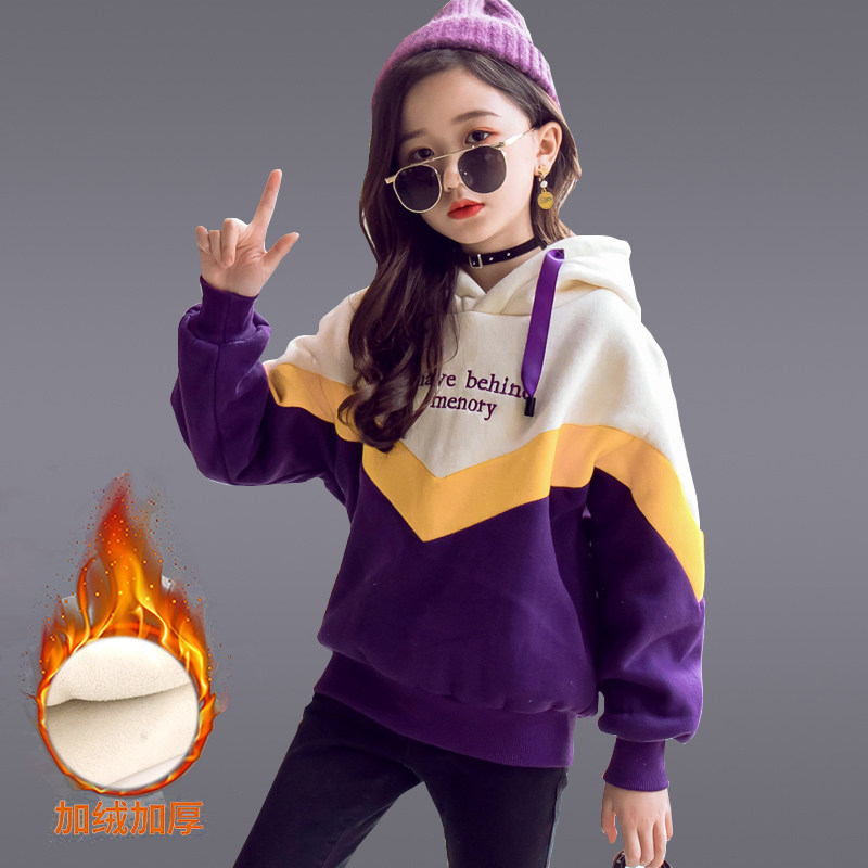 Girl's thick T-shirt plus suede thickened Korean version of the new children's blouses autumn and winter warm children's clothing hoodie fashion great children