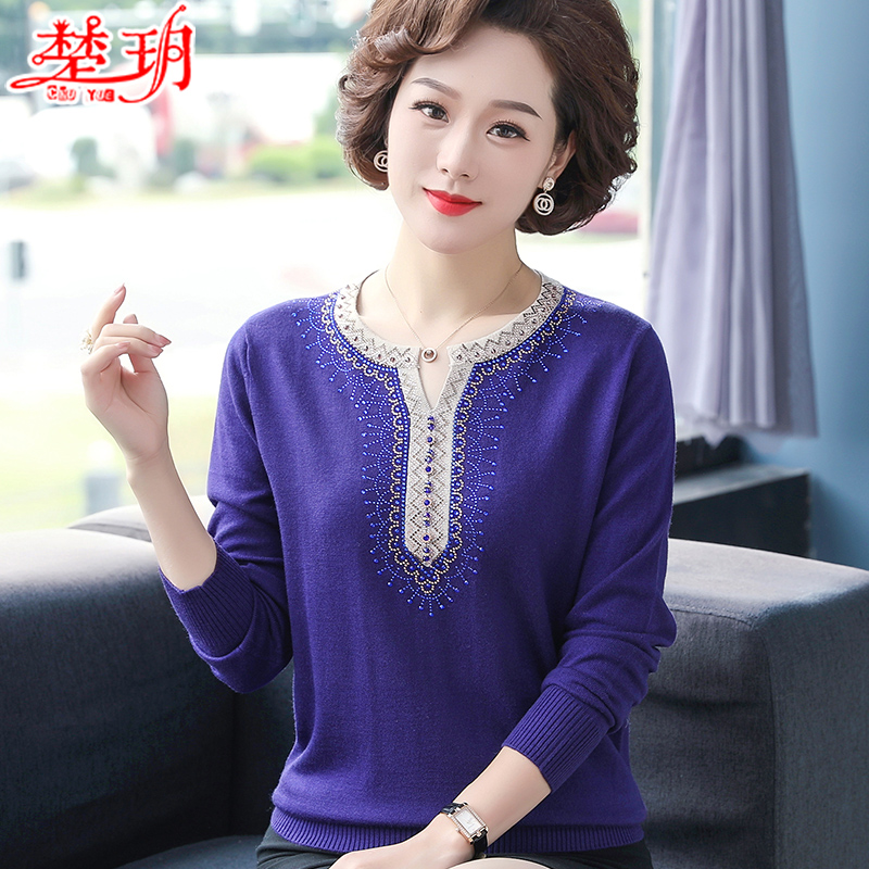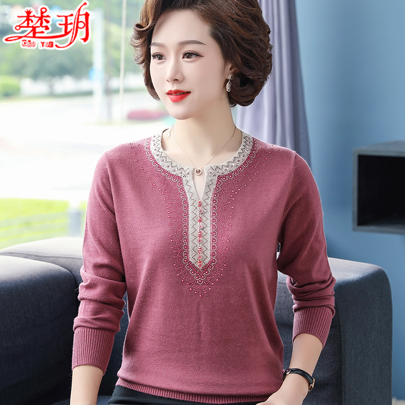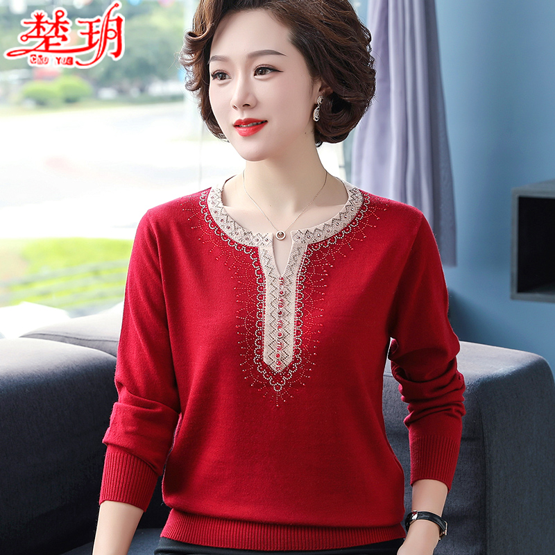 Middle Aged Mother Autumn Clothing Foreign Pie Knit Undershirt New Middle Aged Lady Autumn Winter Short Sweater Sweater Blouse