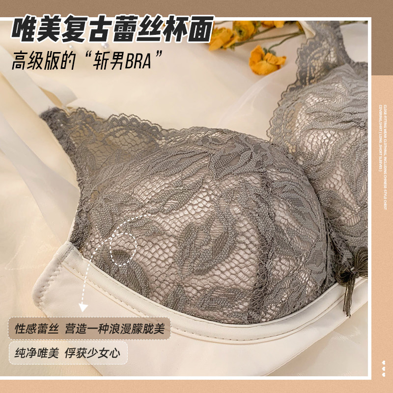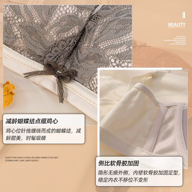 Underwear women's no steel ring upper collection vice breast anti-sagging small breasts gathered girls sexy lace summer underwear set