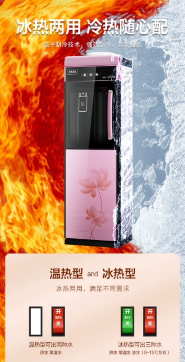 Water dispenser Home vertical hot and cold refrigeration heating ice tepid 98 cm High and large office Bottled Water Universal