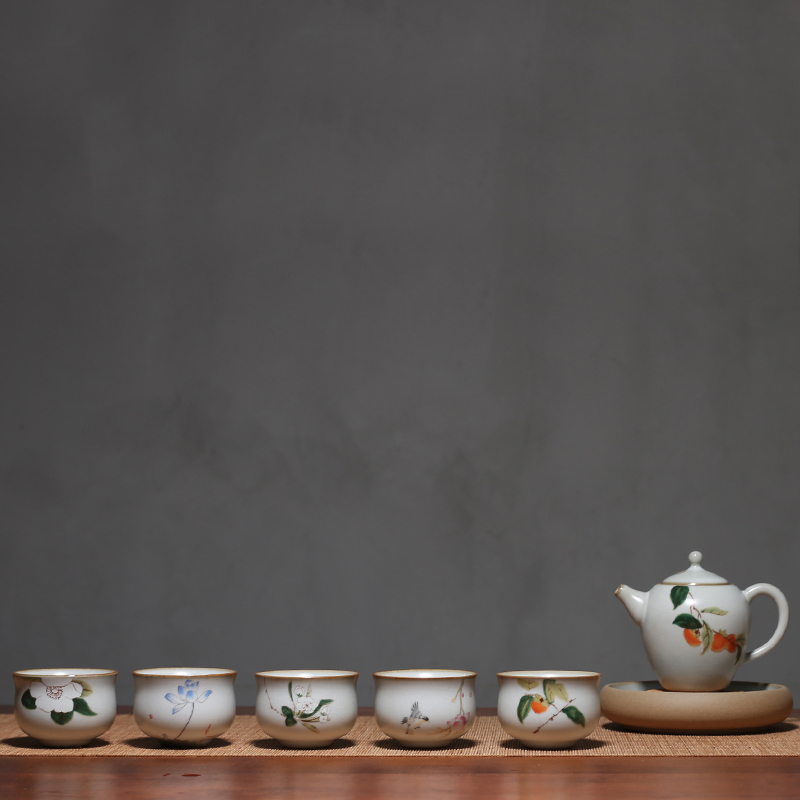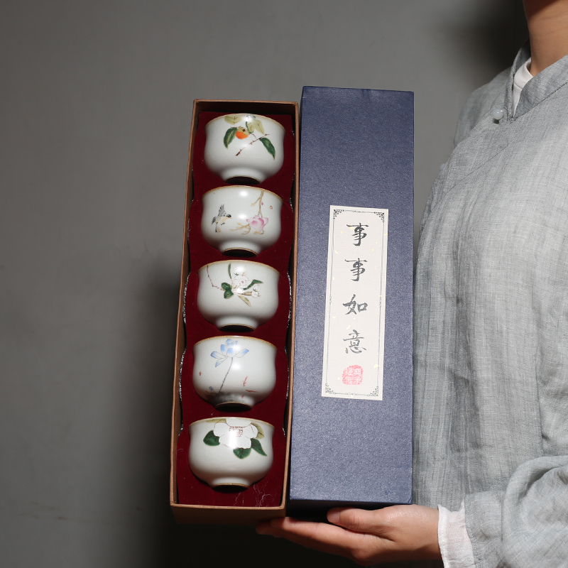 Ru kiln waist cup - Persimmon Ruyi Ru kiln waist cup - Camellia Daixue Ru kiln waist cup - Yuxi Lotus Ru kiln waist cup - Shanhuashan Kai Ru kiln waist cup - Yulan magpie Ru kiln waist cup five one persimmon