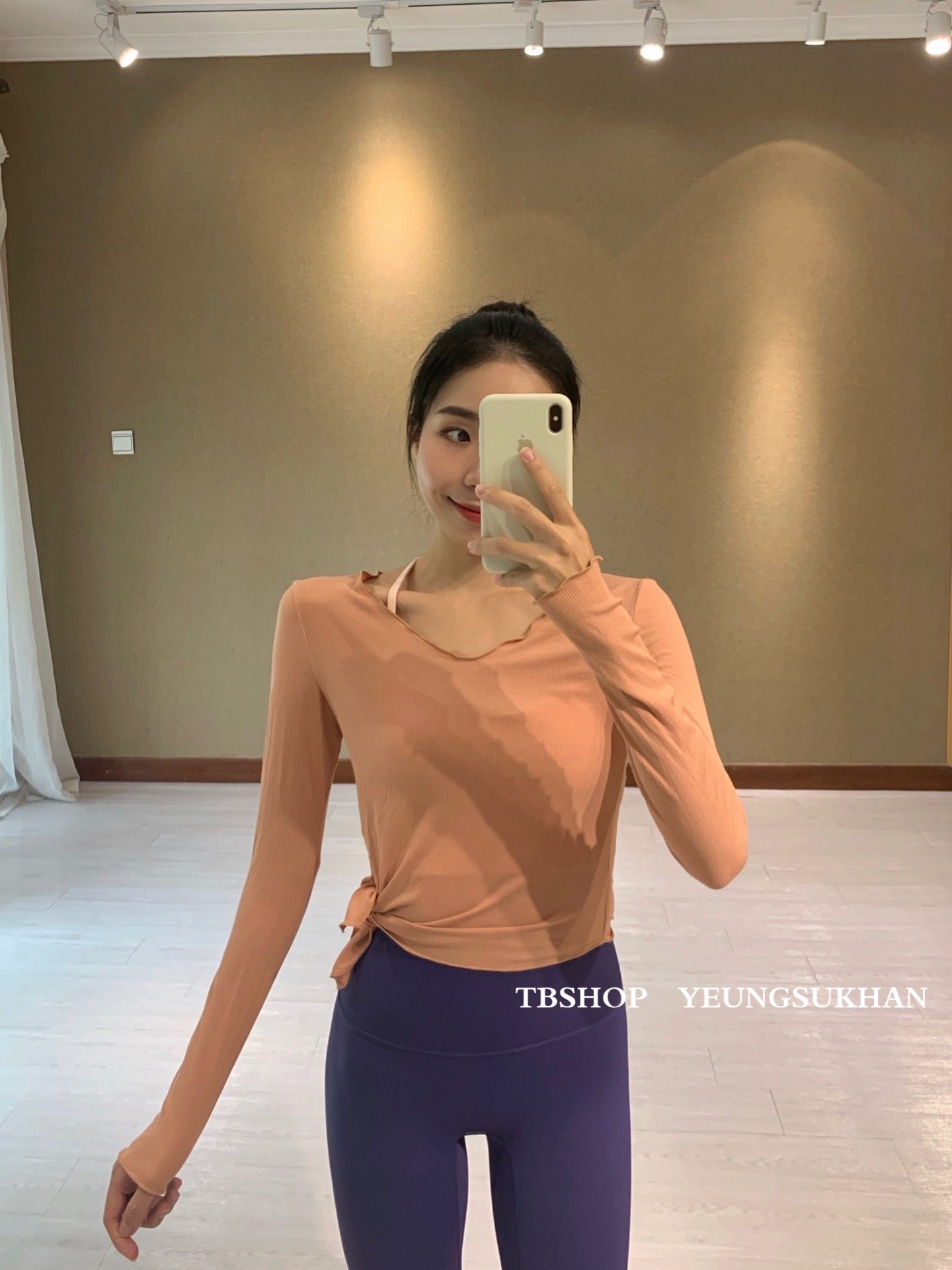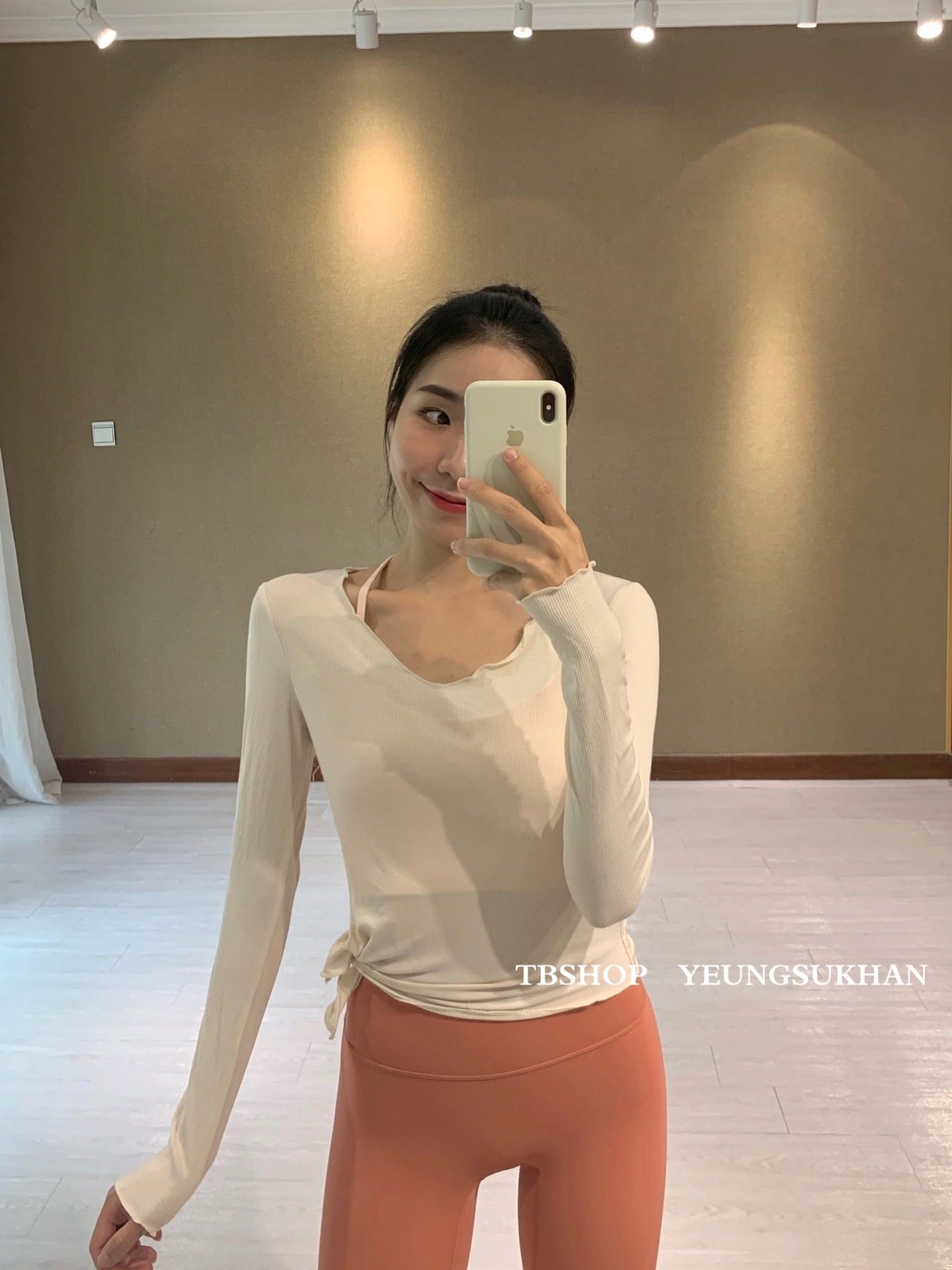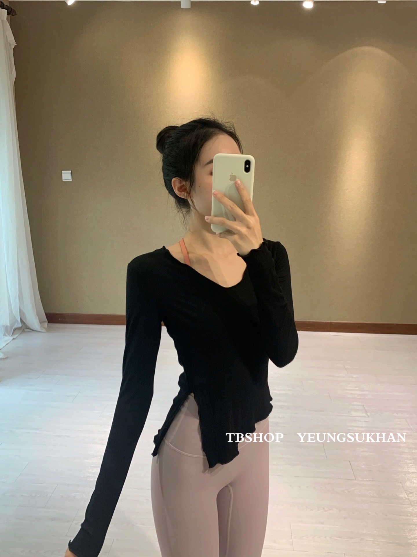 YEUNGSUKHAN SIDE SPLIT LONG SLEEVES * WOOD EAR LITTLE V-NECK TOP YOGA GOWNY SPORT FALL/WINTER UNDERSHIRT