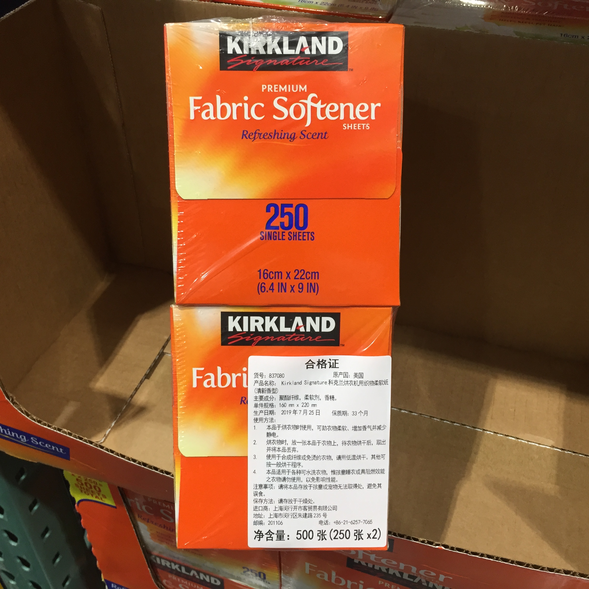Shanghai Costco Kirkland dryer with anti-static wrinkle-removing supple fragrance piece paper 250 pieces * 1 box
