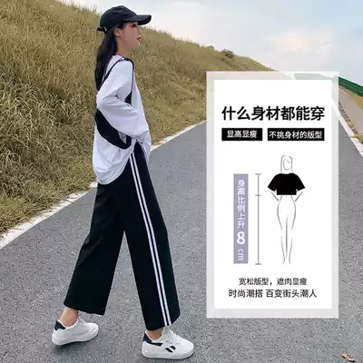 Black wide pants women's spring and autumn loose straight tube 2021 new high waist thin small sports casual pants summer