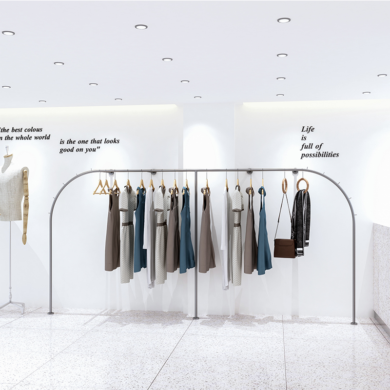 Clothing Store Show Shelves Wall Hanging Stainless Steel Wire Drawing Silver Hanging Clothes Racks Han Wind Women's Clothing Store Shelves