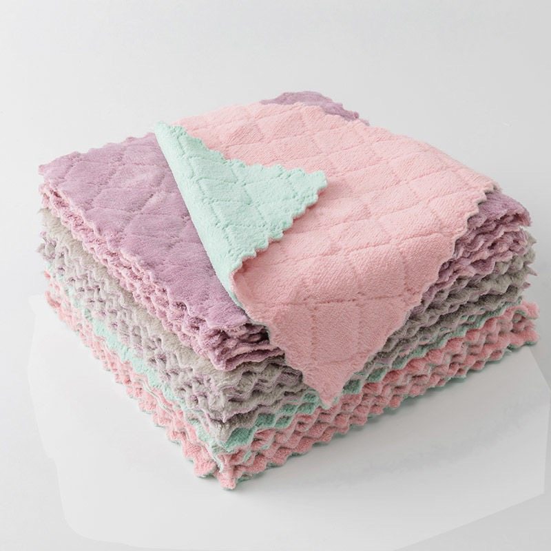 Double layer without oil without hair rags thickened fiber cloth kitchen absorbing without oil cleaning table bowl towel