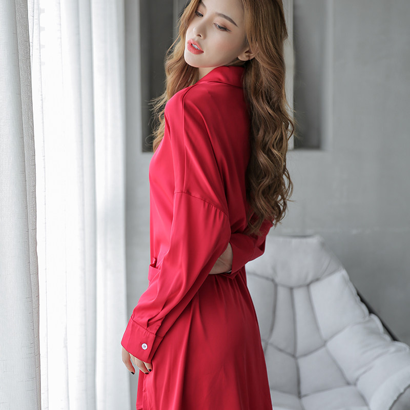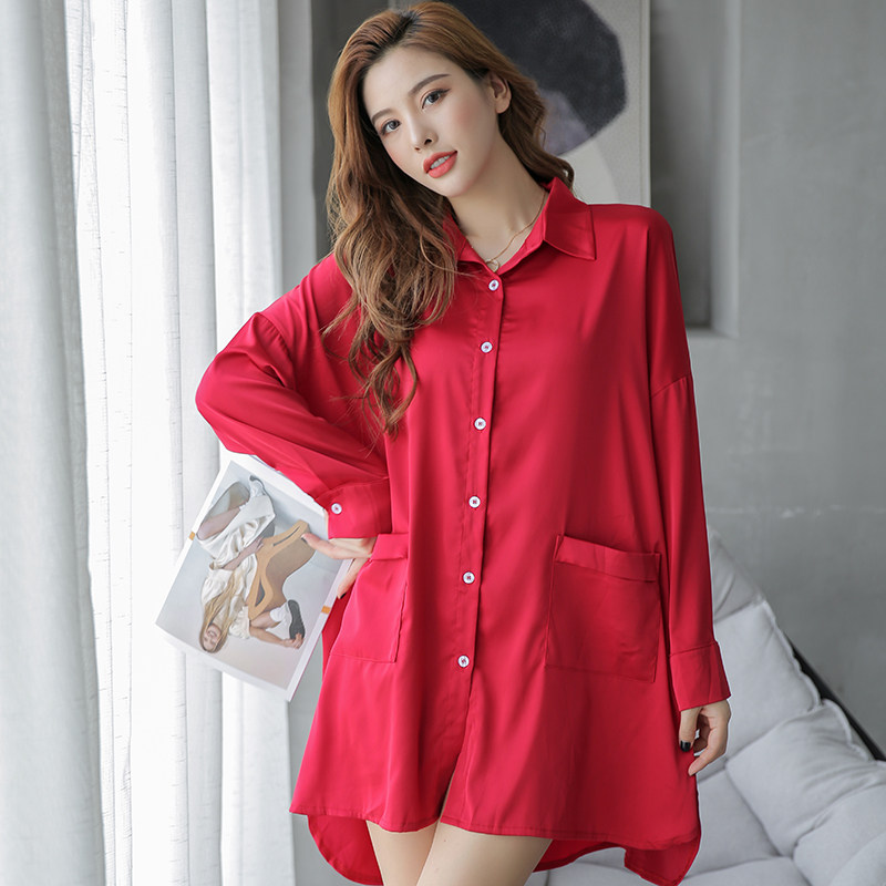 Nightdress women's 2020 new nightdress women's spring and autumn long-sleeved nightdress shirt style air-conditioned room summer home clothes can be worn outside