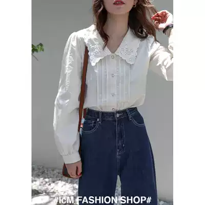 French chic doll collar shirt workplace commuter wild 2020 Autumn New Vintage Embroidered shirt Women
