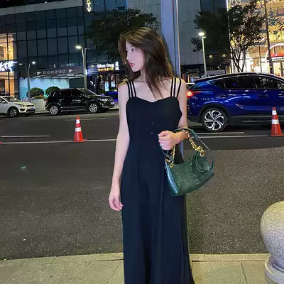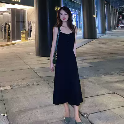 Fei Er Hepburn small black suspender dress female summer 2021 new temperament waist V-neck thin inner skirt