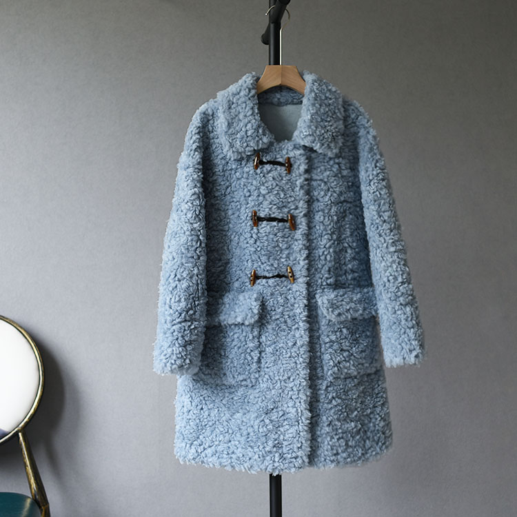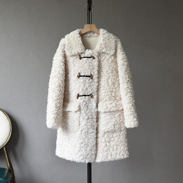 Anti-season 100% pure wool composite fur one-piece medium and long version of sheep shearing coat horn buckle lamb hair coat female