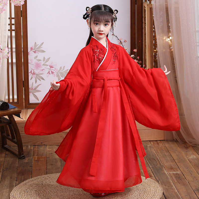Girls Hanfu 2020 autumn new long-sleeved princess dress children's suit skirt girls summer Western style dress