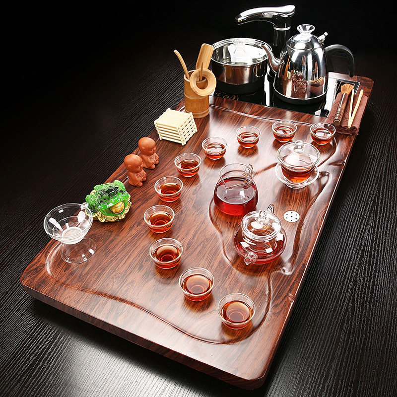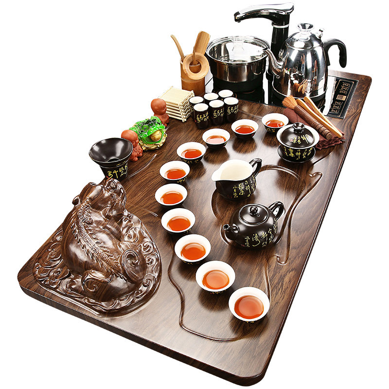 Automatic Sheung Shui tea set Household Purple Sand Gongfu Tea Road Solid wood tea tray set tea table Three-dimensional tea ceremony