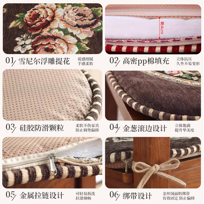 Eurostyle Thickened Solid Wood Dining Chair Cushion Non-slip Chair Dining Chair Cushion Chinese Stool Cushion Long Sitting Fart Cushion Chair Cushion-Taobao