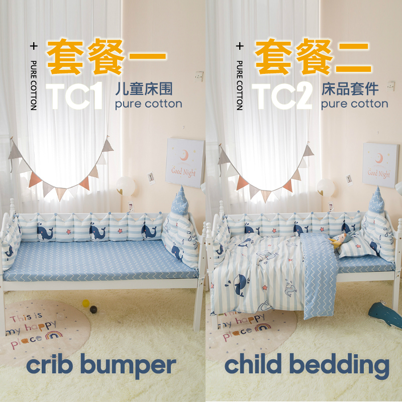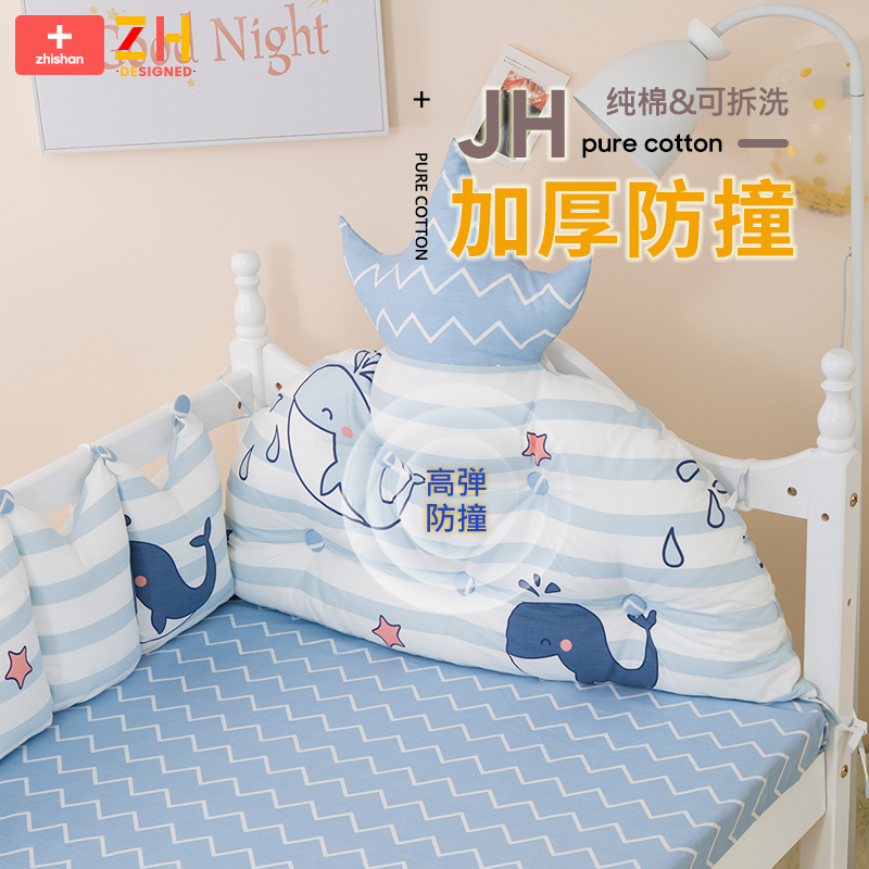 Children's stitching bed bedding anti-collision bed circumference disassembly and washing breathable children's bed cotton kit cotton four seasons quilt cover