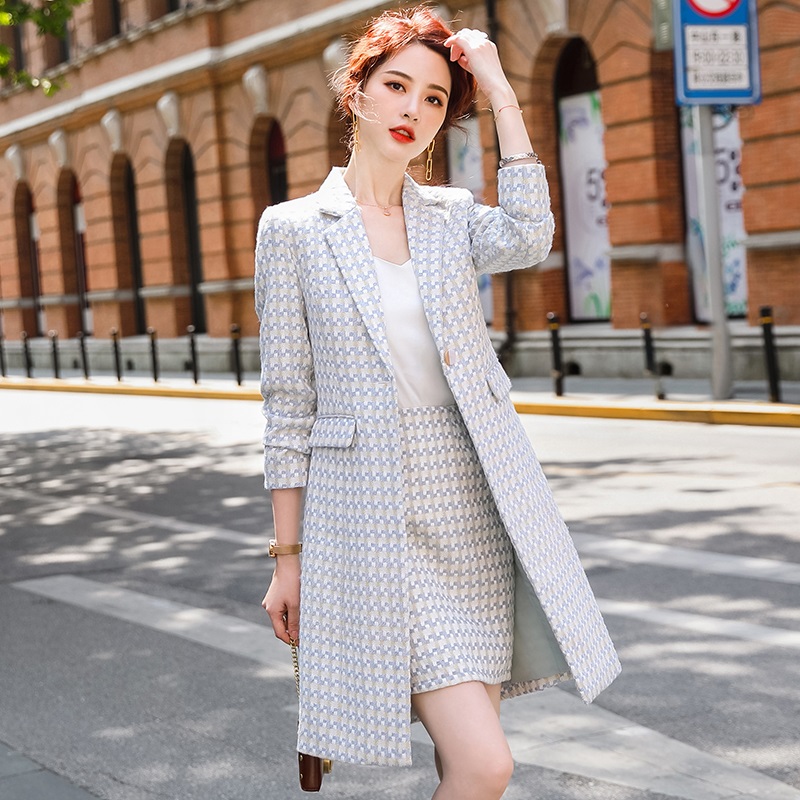 Windbreaker coat women's 2021 new autumn and winter Korean version fashion long version over the knee Western style all-match thickened suit two-piece suit